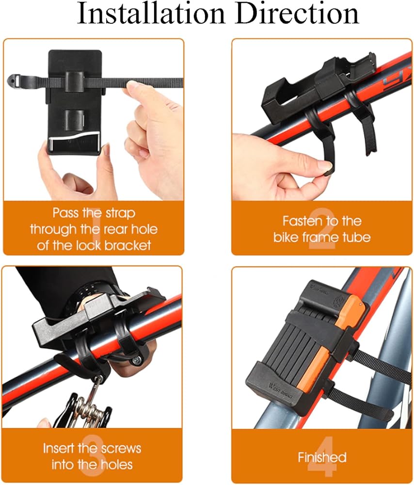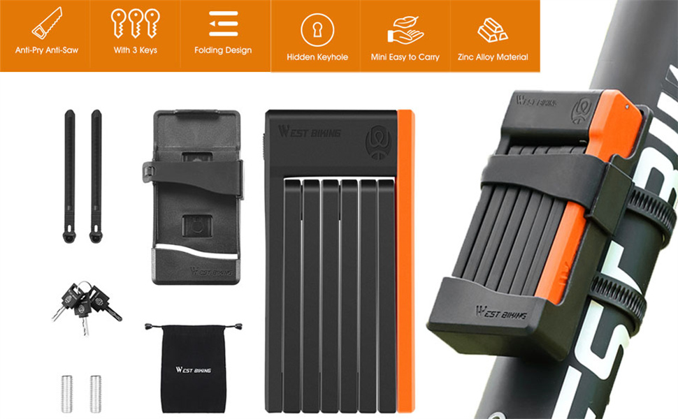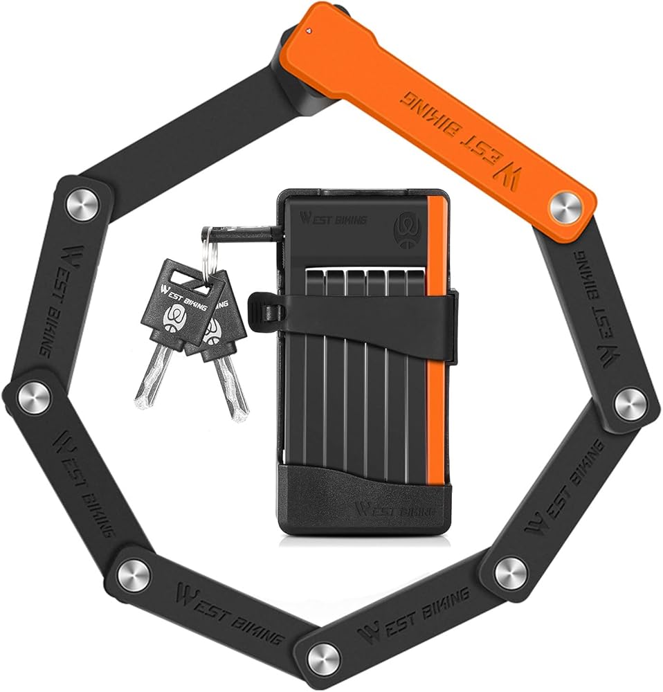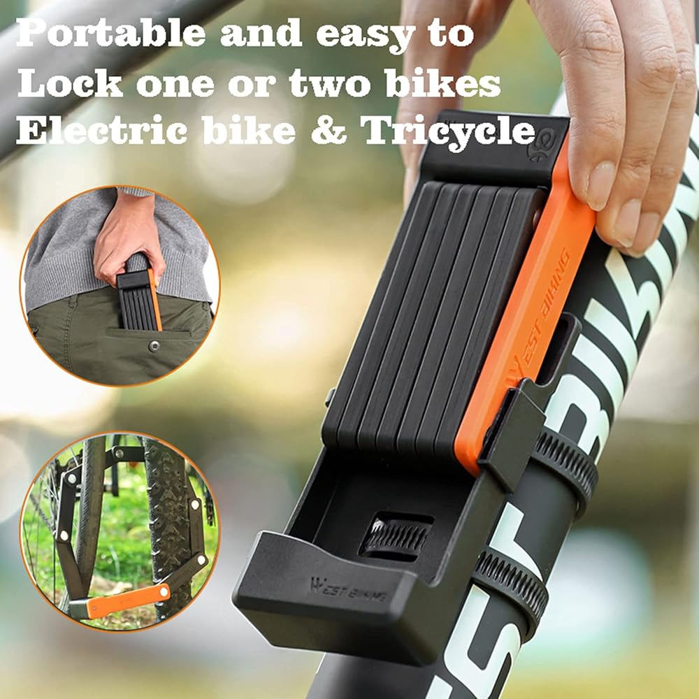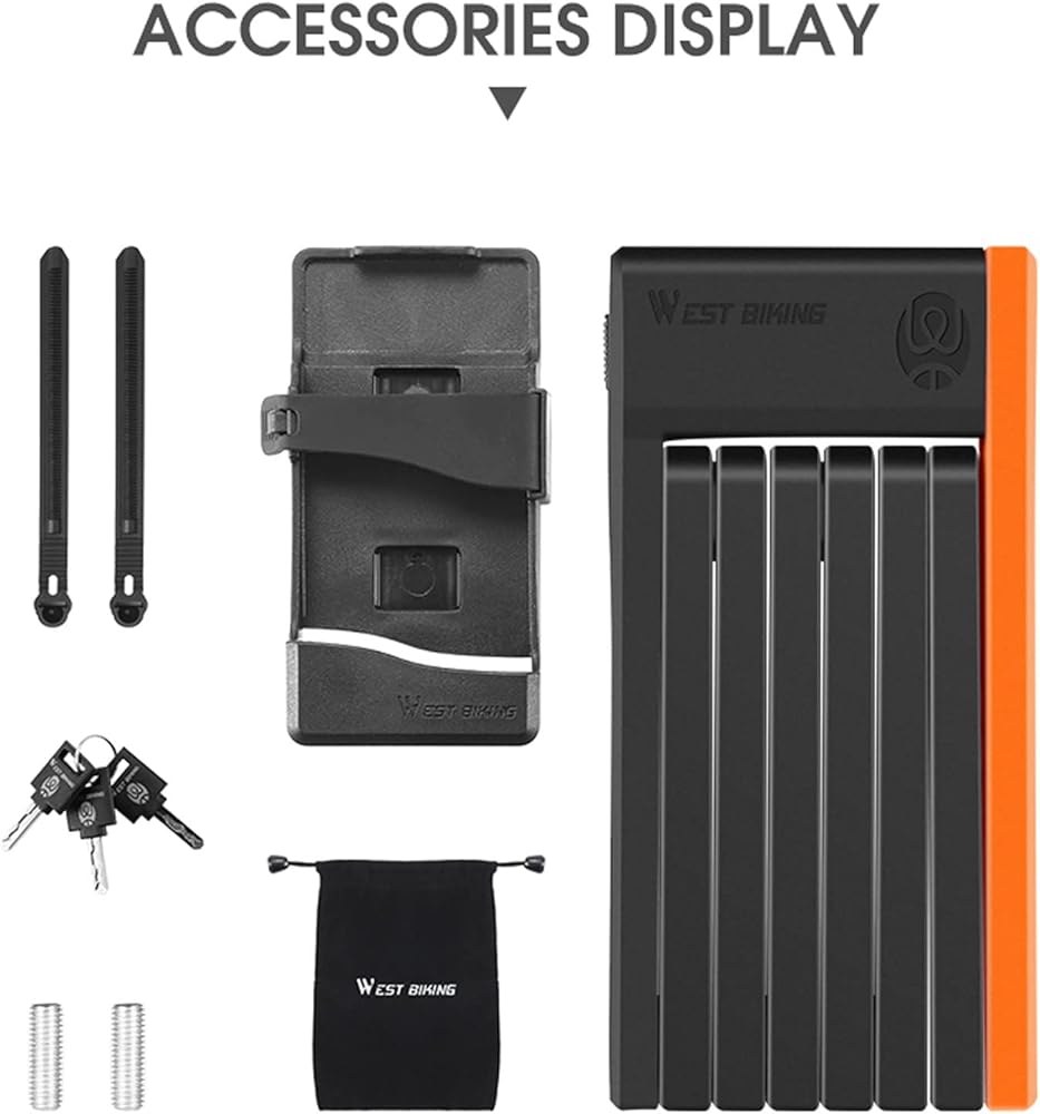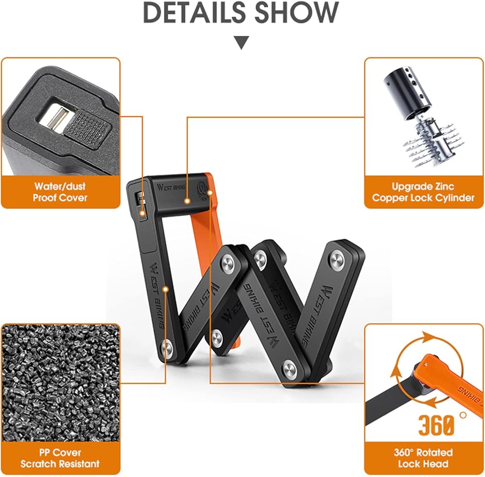 [قفل دراجة صغير الحجم وخفيف الوزن] يتم تخزين أقفالنا بطريقة قابلة للطي. بطول إجمالي يبلغ 24.8 بوصة، يمكن تقصير السلسلة إلى 4.72 بوصة فقط، عند طيها وتزن 1.09 رطل، مما يجعل القفل مناسبًا للحمل أو التثبيت على إطار الدراجة. مع هيكل فولاذي مقوى فائق القوة 5 مم، جسم قفل الدراجة المعالج بالتسخين المكون من 8 قطع هو رادع جيد ضد قواطع الكابلات/السلاسل.