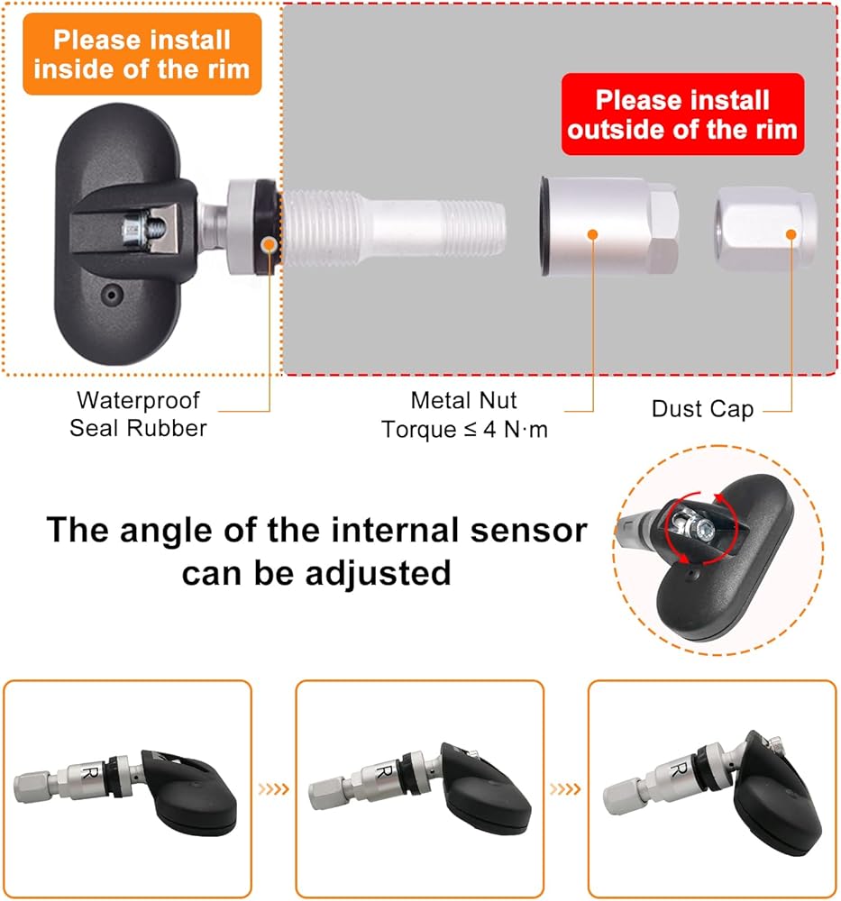 【وظيفة كشف حركة أجهزة الاستشعار 】تستيقظ أجهزة الاستشعار ① تلقائيًا عندما يبدأ تشغيل الإطار. ②قم بتحديث بيانات ضغط الإطارات ودرجة الحرارة بسرعة إلى جهاز مراقبة الطاقة الشمسية. ③النوم تلقائيًا بعد ركن السيارة لتوفير طاقة المستشعرات وإطالة عمر بطارية المستشعر. ④مجهزة بـ 4 أجهزة استشعار داخلية مقاومة للماء IP67، أكثر ملاءمة للاستخدام اليومي. ⑤بطاريات المستشعر الداخلي قابلة للاستبدال، والمستشعر قابل لإعادة الاستخدام، ونوع البطارية CR2032.
