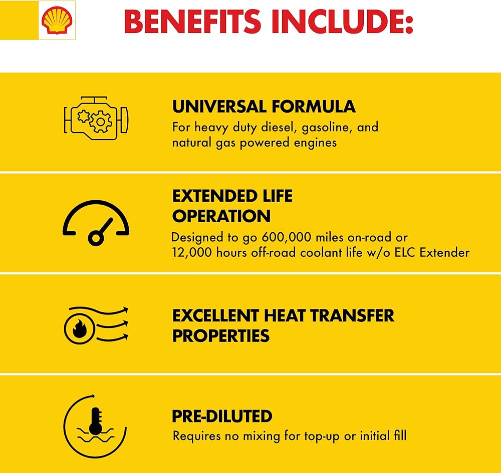زيت شل Rotella ELC ممتد العمر، مخفف مسبقًا بنسبة 50/50 مضاد للتجمد + سائل تبريد (1 جالون، علبة مكونة من 6)