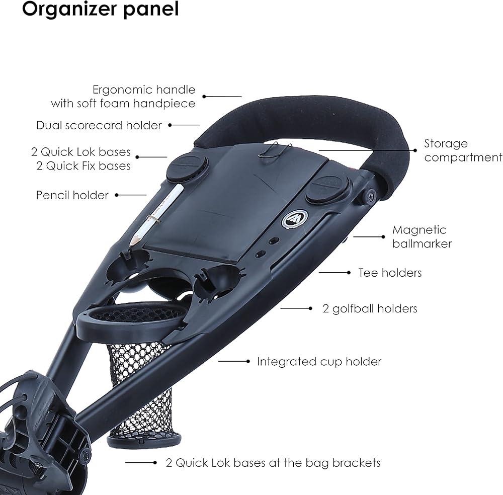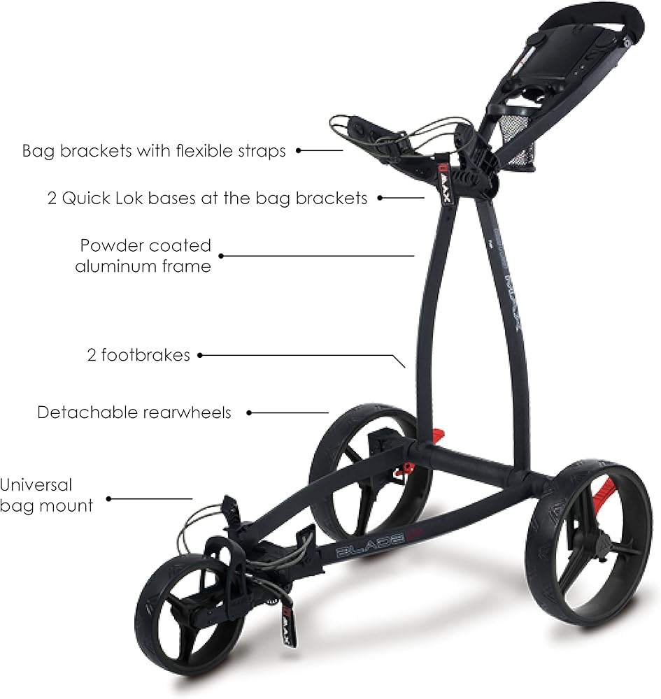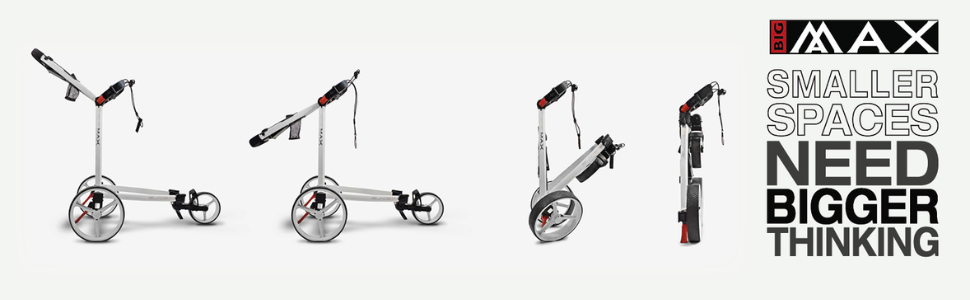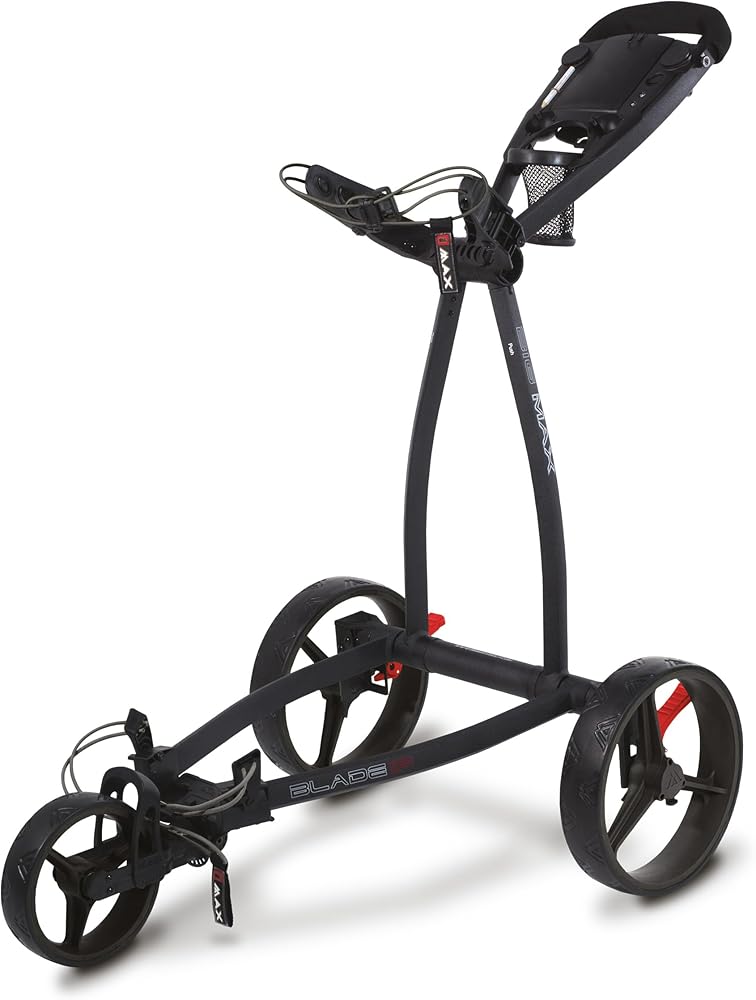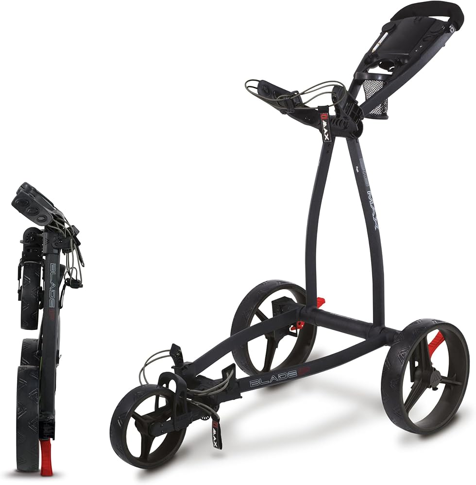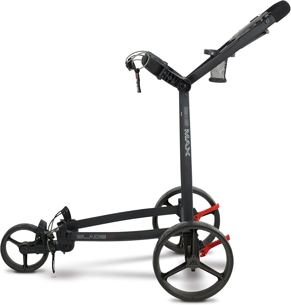 "The BIG MAX Blade IP brings a new level of design and function to the push cart market. With an ultra-slim, Fold Flat design the Blade IP folds in a matter of seconds with the wheels automatically folding fl at under the cart ready to be transported or stored in the smallest of spaces. Out on the course the Blade IP glides along the fairways and is packed with functional features that make it a pleasure to walk the course".