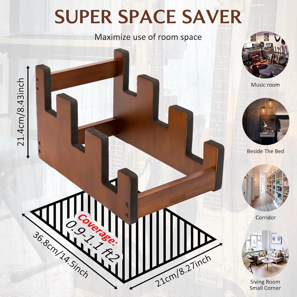 • 🆕توفير فائق للمساحة - يعمل التصميم المبتكر ذو الطبقات على تحسين استخدام المساحة ويوفر عرضًا ممتازًا لمجموعات الجيتار. قل وداعًا للأرضيات الفوضوية، وحوّل منزلك أو الاستوديو الخاص بك إلى عرض موسيقي منظم ومذهل بصريًا. مصمم خصيصًا لفناني الأداء وهواة الجمع، حامل الجيتار هذا هو منظم أدواتك الفعال.