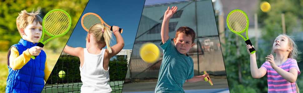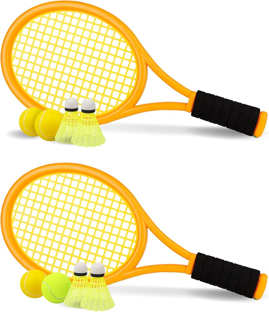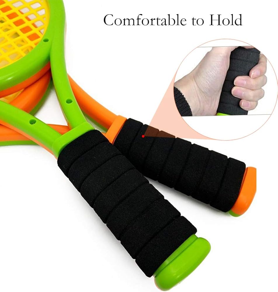 - ☆يتضمن المنتج: زوج واحد من مضارب التنس، و3 كرات ناعمة، و1 كرة تنس و4 كرات مكوكية.