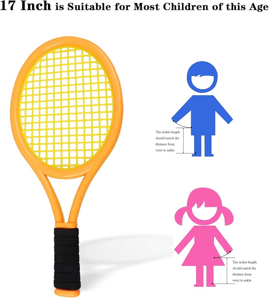 مجموعة مضارب تنس للأطفال، مضرب 17 بوصة مع 3 كرات ناعمة، وكرة تنس واحدة و4 كرات تنس الريشة للرياضات الداخلية والخارجية للأطفال الصغار