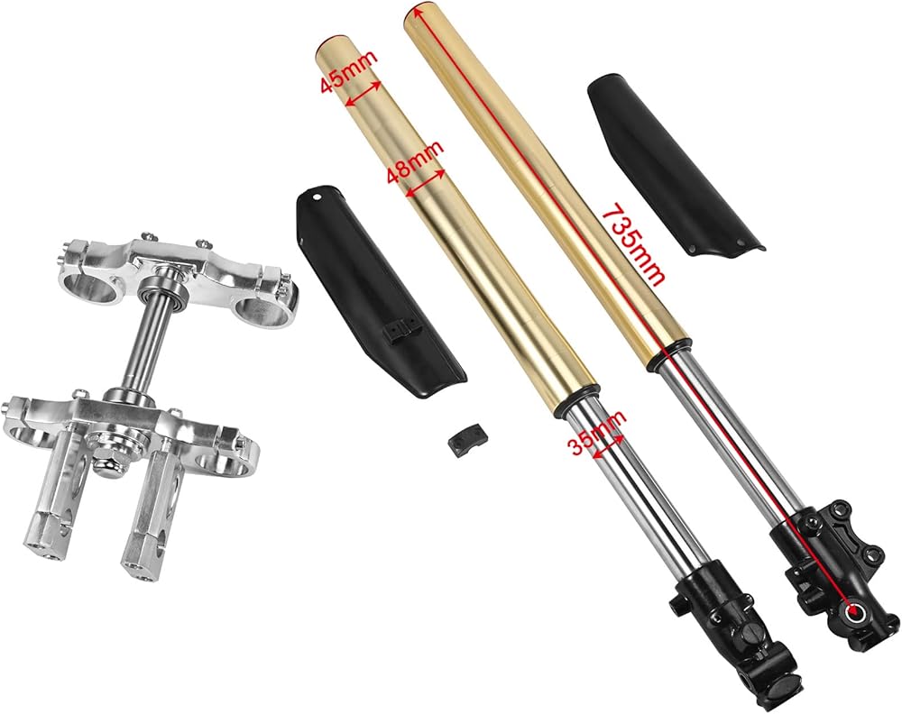 مجموعة كاملة لصدمات الشوكة الأمامية 45 مم/48 مم ومشبك ثلاثي للمقود من أجل Dirt Pit Pro Trail Bike Motocross Upside Down Shocker 110cc 125cc 150cc
