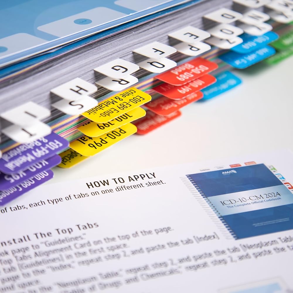 علامات تبويب الفهرس لـ ICD-10-CM 2024 كتاب الرموز الرسمي الكامل - سهولة التنقل لكتب الترميز الطبي (لإصدار AMA)