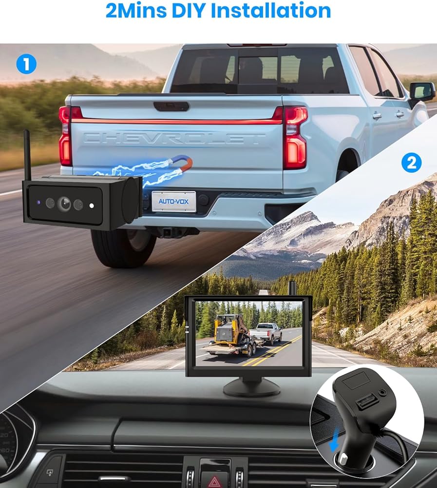 【عمر بطارية قابلة لإعادة الشحن 15 ساعة لرحلة سفر طويلة】بطارية مدمجة بقوة 6600 مللي أمبير في الساعة، يمكن للكاميرا الاحتياطية اللاسلكية للشاحنات العمل بشكل مستمر لمدة تصل إلى 15 ساعة بمجرد شحنها بالكامل، وهو ما يكفي لتلبية رحلة طويلة تصل إلى 5000 ميل أو في غضون 30 يومًا. الكاميرا الاحتياطية المغناطيسية تعمل بمجرد الرجوع للخلف. لا حاجة للضغط يدويًا على زر الطاقة الخاص بالكاميرا الاحتياطية للمركبات الترفيهية.