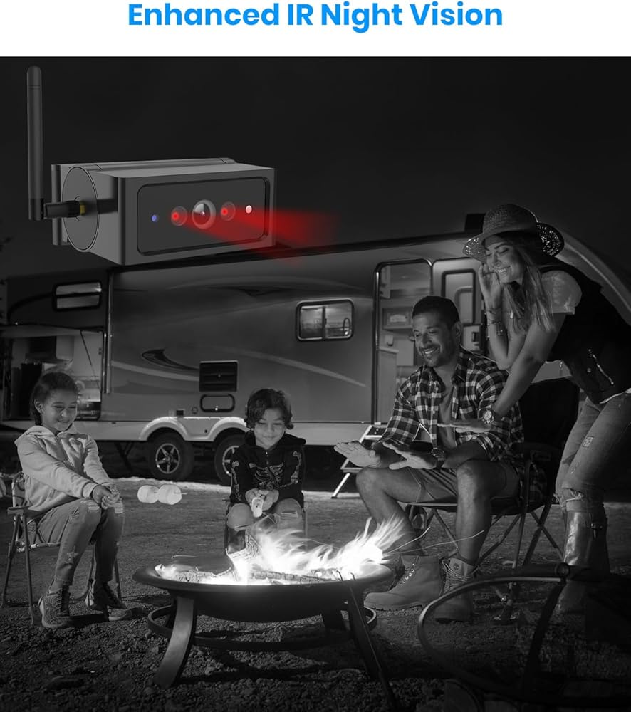 【صورة واضحة 1080P ورؤية ليلية محسنة بالأشعة تحت الحمراء 】توفر الكاميرا الاحتياطية للمركبات الترفيهية بدقة 1080P صورة واضحة وحادة حتى في ضوء الشمس القوي. خاصة في البيئات منخفضة الإضاءة، يمكن للكاميرا الاحتياطية للشاحنة.RV مع 2 مصابيح LED قوية تعمل بالأشعة تحت الحمراء أن تضيء نطاق الرؤية الخلفية في نطاق 30 قدمًا، وتعرض المزيد من التفاصيل لضمان سلامتك أثناء القيادة أو الرجوع للخلف.