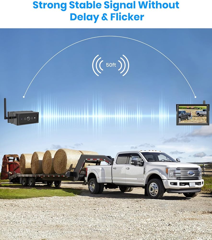 【إشارة ثابتة قوية بدون تأخير وميض】مدمج في أحدث هوائي لاسلكي لتحسين الثبات بنسبة 50%، الكاميرا الاحتياطية اللاسلكية للمركبات الترفيهية مع نطاق نقل لاسلكي يصل إلى 50 قدمًا بدون وميض أو تأخير. يعد نظام الكاميرا اللاسلكي هذا مثاليًا لشاحنة الجيب/الالتقاط/السيارة/التخييم/المسافر RV/مقطورة الحصان/العجلة الخامسة/سيارات الدفع الرباعي/الشاحنة/الجرار/القارب إلخ.
