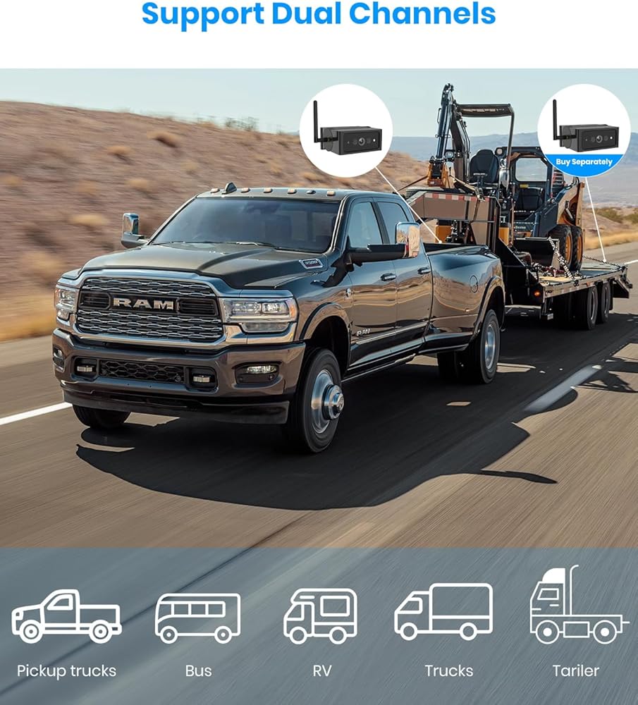 【شاشة السيارة مقاس 5 بوصات تدعم كاميرتين】الكاميرا الاحتياطية RV المزودة بشاشة مقاس 5 بوصات مزودة بقاعدة تثبيت قوية، والتي يمكن أن توفر ثباتًا رائعًا لهذه الشاشة، ولا تهتز أو تهتز. يمكن لكاميرات المقطورة اللاسلكية إضافة كاميرا RV ثانية لتقليل النقطة العمياء أثناء القيادة وجعل السفر أكثر أمانًا.