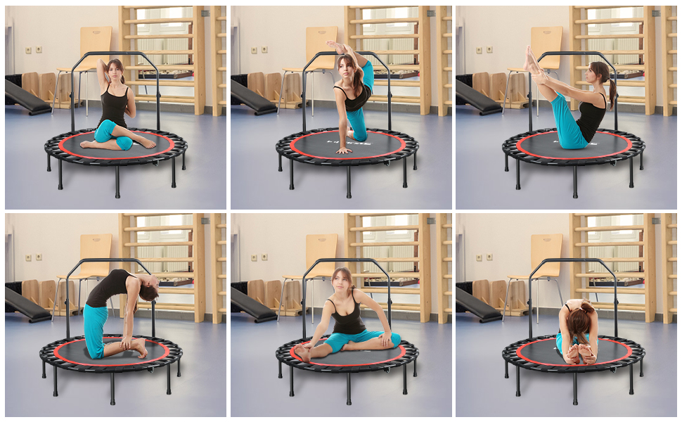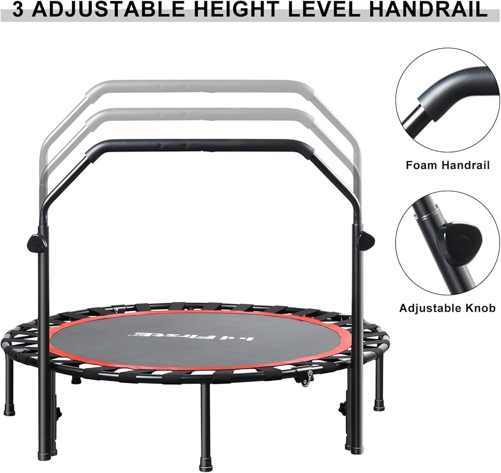 【قضيب إسفنجي قابل للتعديل الارتفاع】 ترامبولين ريبوندر لمعدات البالغين مع مقود قابل للتعديل بارتفاع 3 مستويات، يتراوح من 31.5 بوصة إلى 39.8 بوصة (المسافة الأرضية). يغطي درابزين الترامبولين أيضًا رغوة عالية الكثافة، لتتمكن من الإمساك بها بشكل مريح وأكثر استقرارًا وأمانًا.