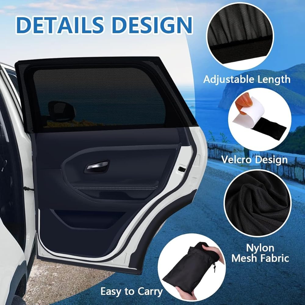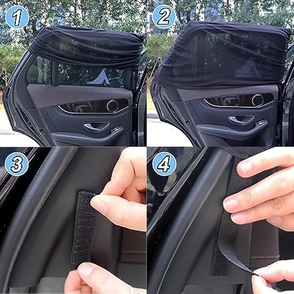 【حماية من الشمس/الأشعة فوق البنفسجية】 مظلة سيارة شبكية مزدوجة من النايلون، أكثر سمكًا لمنع وهج الشمس والحرارة، وتحمي المقعد الخلفي للطفل أو العائلة أو الركاب من حروق الشمس، مما يقلل من درجة حرارة السيارة.