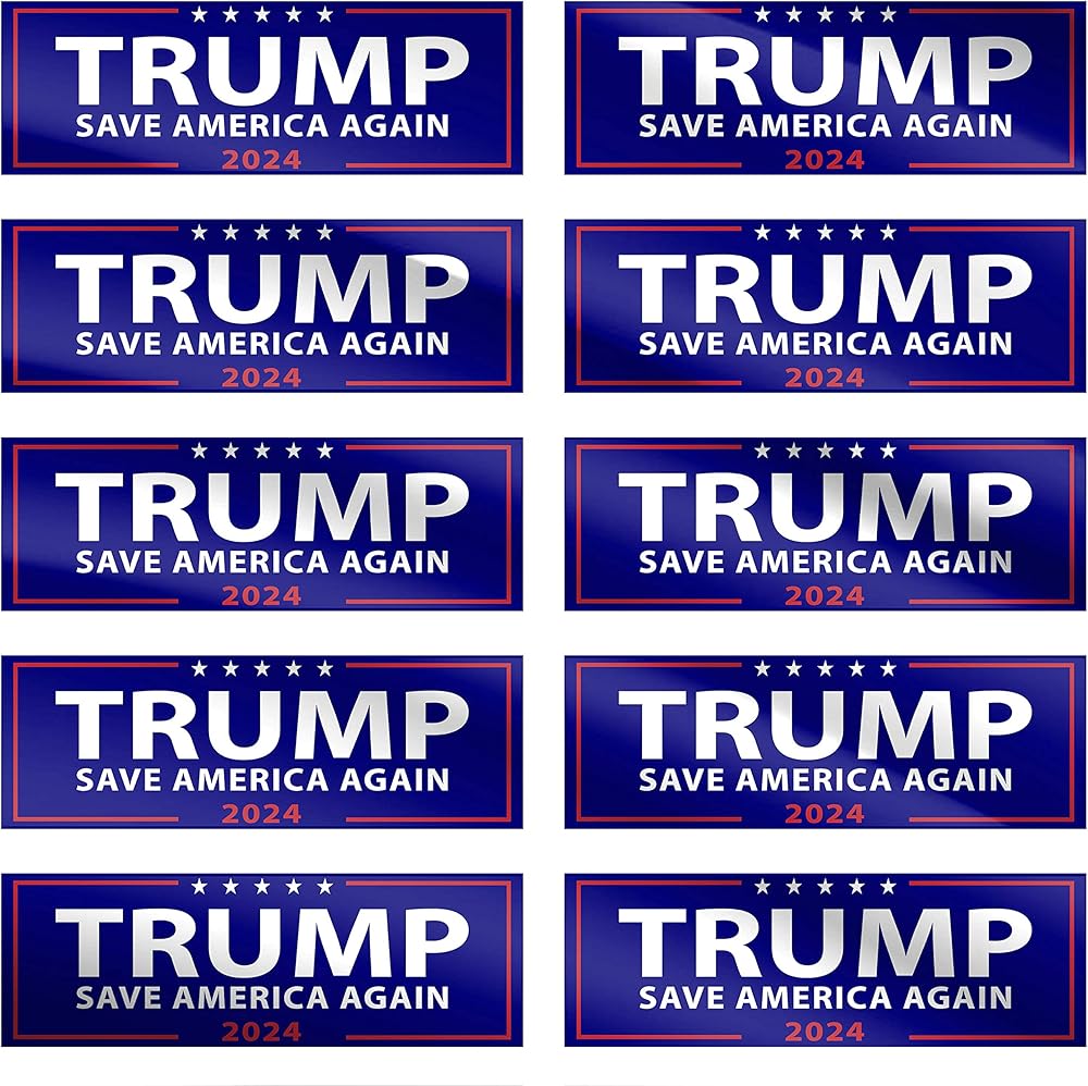10 قطع من ملصقات دونالد ترامب 2024 Save America Again مقاس 9 بوصة × 3 بوصة للسيارة والمنزل والنوافذ والكمبيوتر المحمول