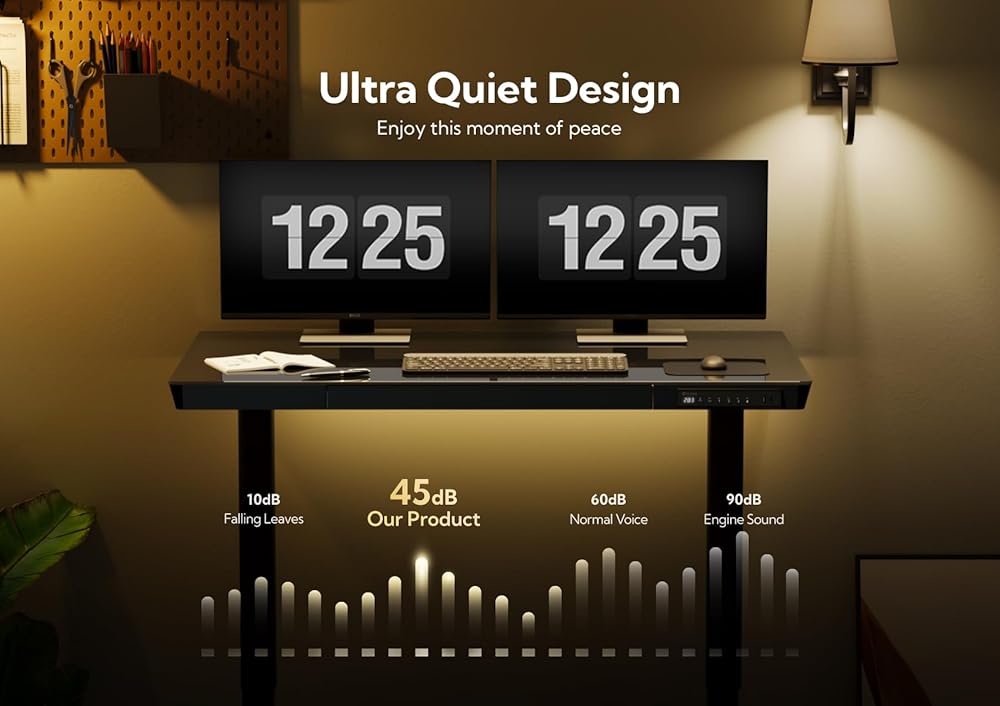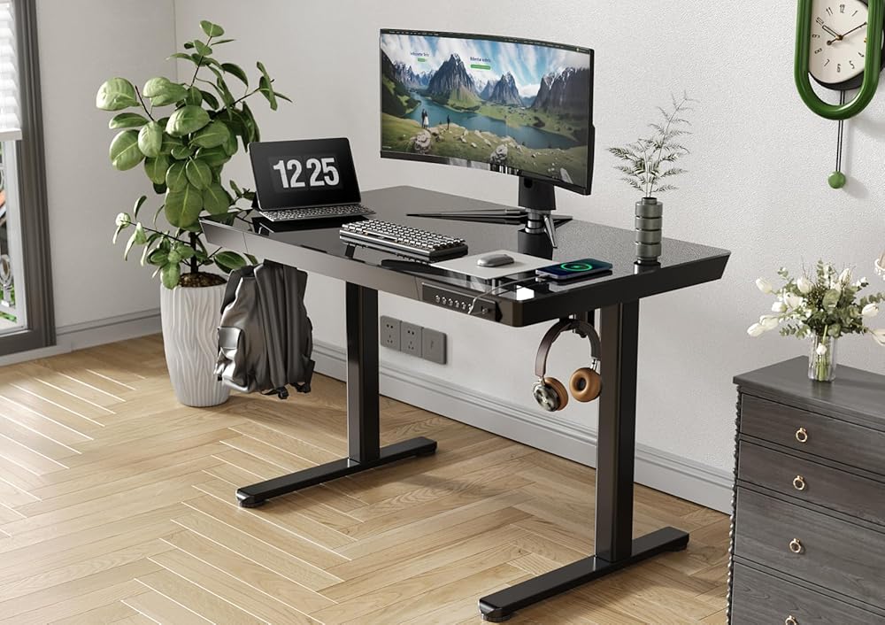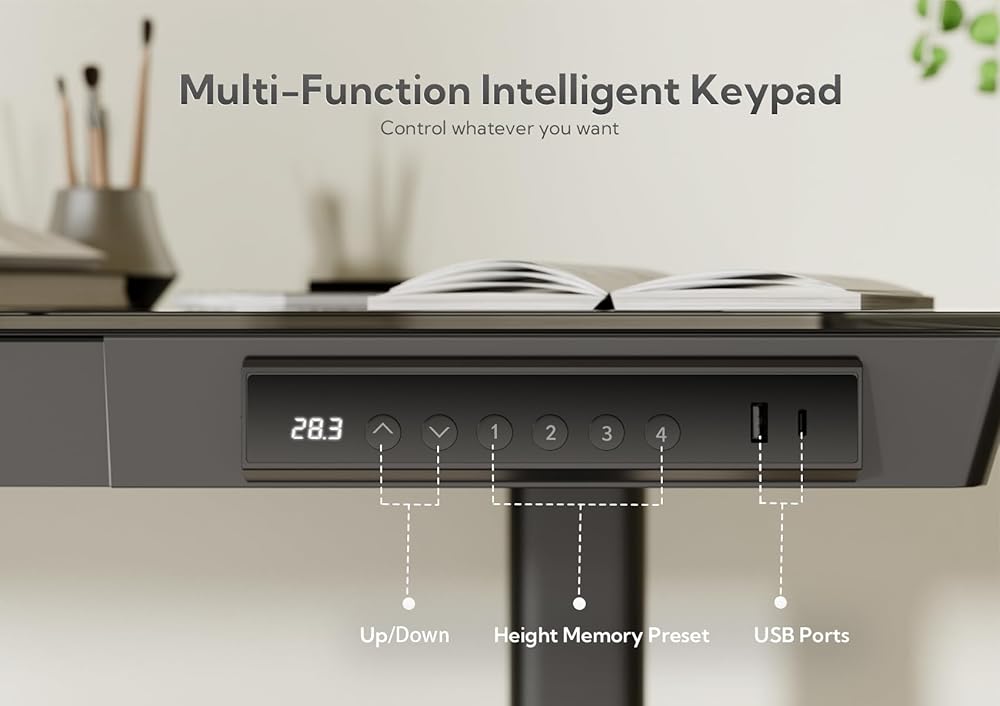 Multi-Functional Design: Our glass standing desk is equipped with USB ports and a Type-C port that can charge up to two devices at once. Please note that charging on the USB ports may be temporarily suspended when adjusting the desktop height