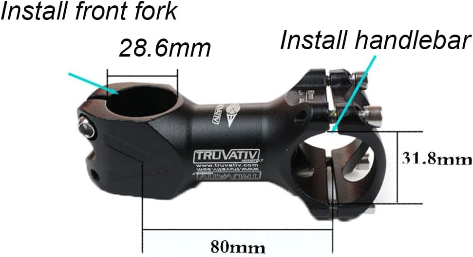 الزاوية والحجم: زاوية جذع الدراجة هذه هي -7 درجة. قطر المقود 31.8 ملم (1.25 بوصة)، قطر الشوكة الأمامية 28.6 ملم (1-1/8 بوصة)، الطول 80 ملم.