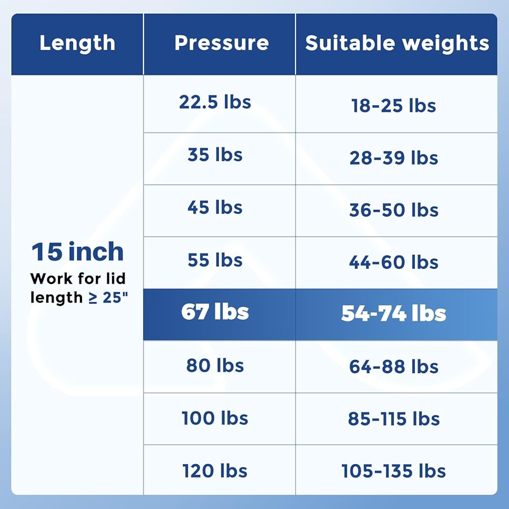 ✅ممتصات صدمات الغاز 15 بوصة 300N - ARANA مقاس 15 بوصة 67 رطل/300 نيوتن ستكون مناسبة للأغطية الثقيلة، مع وزن الغطاء بين 55-75 رطل، وطول الجانب ≥ 25 بوصة؛ ملاحظة: قم بقياس وزن الغطاء لتجنب شراء العناصر الخاطئة؛