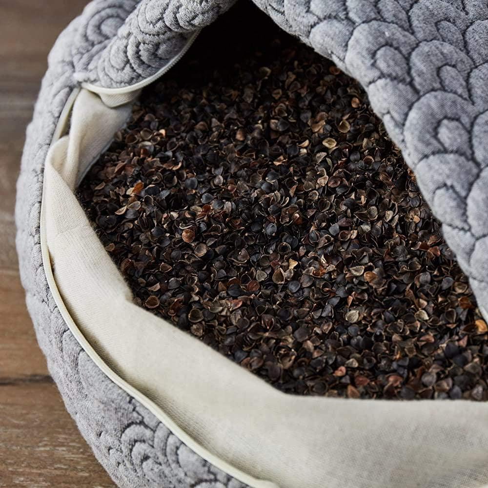A GOTS Certified organic cotton inner liner holds the buckwheat pillow fill, making it easy to remove and replace to customize the firmness and height for a fresh resting place
