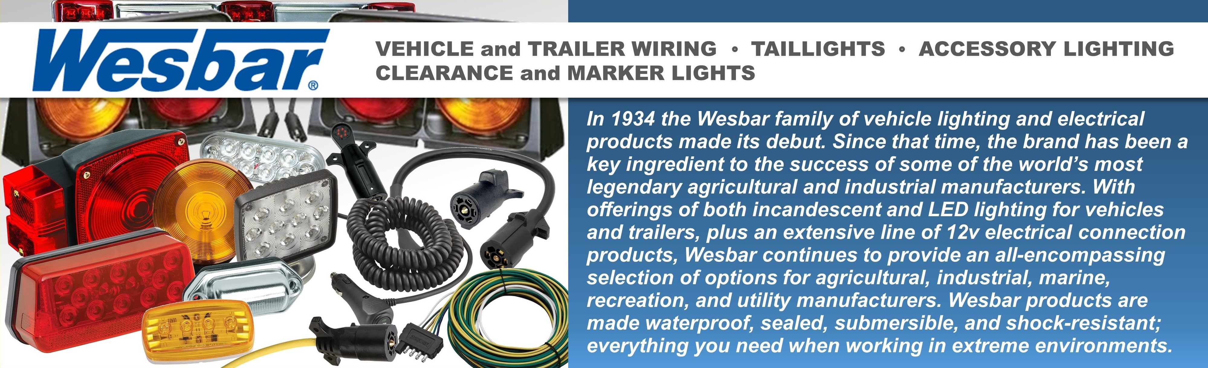In 1934 the Wesbar family of vehicle lighting and electrical products made its debut. Since that time, the brand has been a key ingredient to the success of some of the world's most legendary agricultural and industrial manufacturers. With offerings of both incandescent and LED lighting for vehicles and trailers, plus an extensive line of 12 volt electrical connection products, Wesbar has continued to provide an all-encompassing selection of options for agricultural, industrial, marine, recreation and utility manufacturers. Wesbar products are made waterproof, sealed, submersible and shock-resistant; everything you would expect when working in extreme environments.
