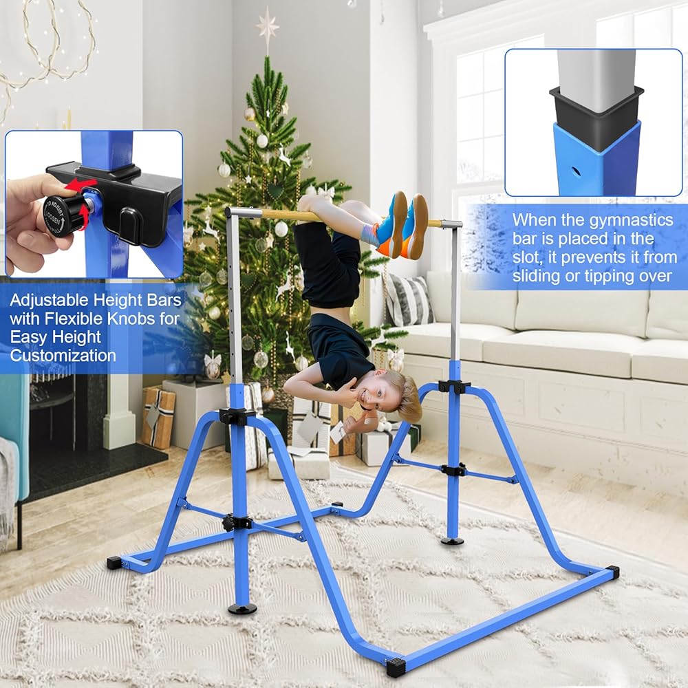 This gymnastic bar is built to withstand demanding routines. With a weight capacity of 300 pounds, you can have peace of mind knowing that your young gymnast is safe during their practice sessions.