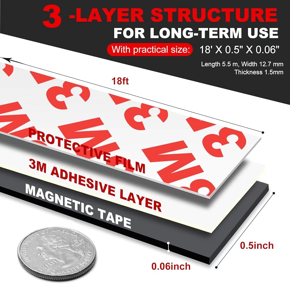 الحجم: طول لفة واحدة 1/2 بوصة × 18 قدم شريط مغناطيسي مرن، هناك لفتان من لفة الشريط المغناطيسي ملفوفة في العبوة، إجمالي 36 قدم، سميكة للغاية (1.5 مم) لفات مغناطيسية طويلة متباينة الخواص، تحمل ما يصل إلى 80 جم / سم 2. أضف عدة شرائح مغناطيسية أو أطول للأشياء الأثقل.