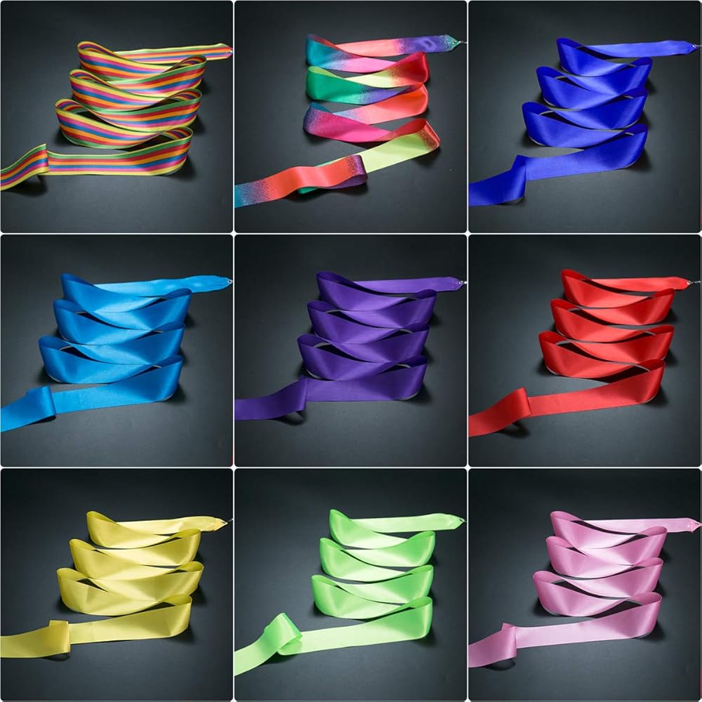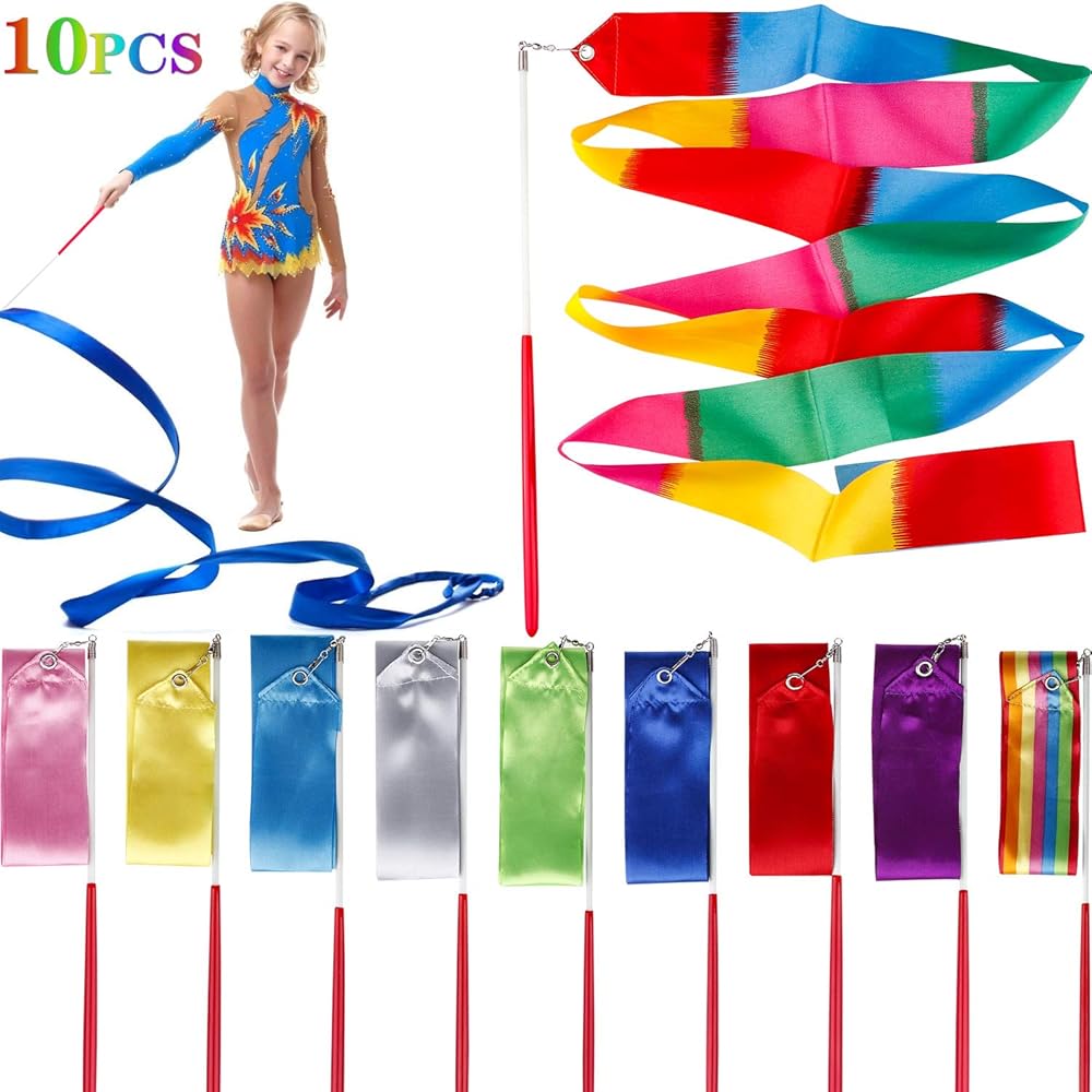🌈المواصفات - تحتوي كل عبوة على 10 قطع من عصا الشريط بألوان متنوعة. يبلغ عرض كل شريط رقص 1.7 سم وطول يصل إلى 6.6 قدم (القضيب غير متضمن). يبلغ طول القضيب حوالي 11.4 سم.