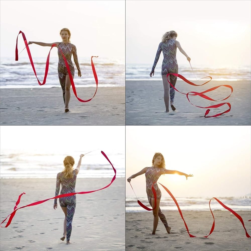 🌈مادة متينة - مثالية للمشاركة في أنشطة الرقص النشطة المختلفة. مصنوع من الحرير عالي الجودة مع مقبض مطلي بالبلاستيك الأحمر. يوفر المشبك المعدني الموجود أعلى القضيب للشريط دورانًا مرنًا.