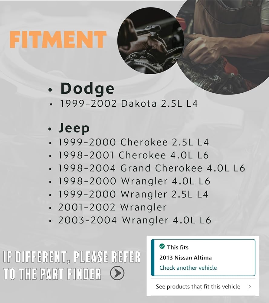 • [الملاءمة]:متوافق مع 1998-2004 جيب رانجلر TJ جراند شيروكي 4.0L داكوتا 2.5L