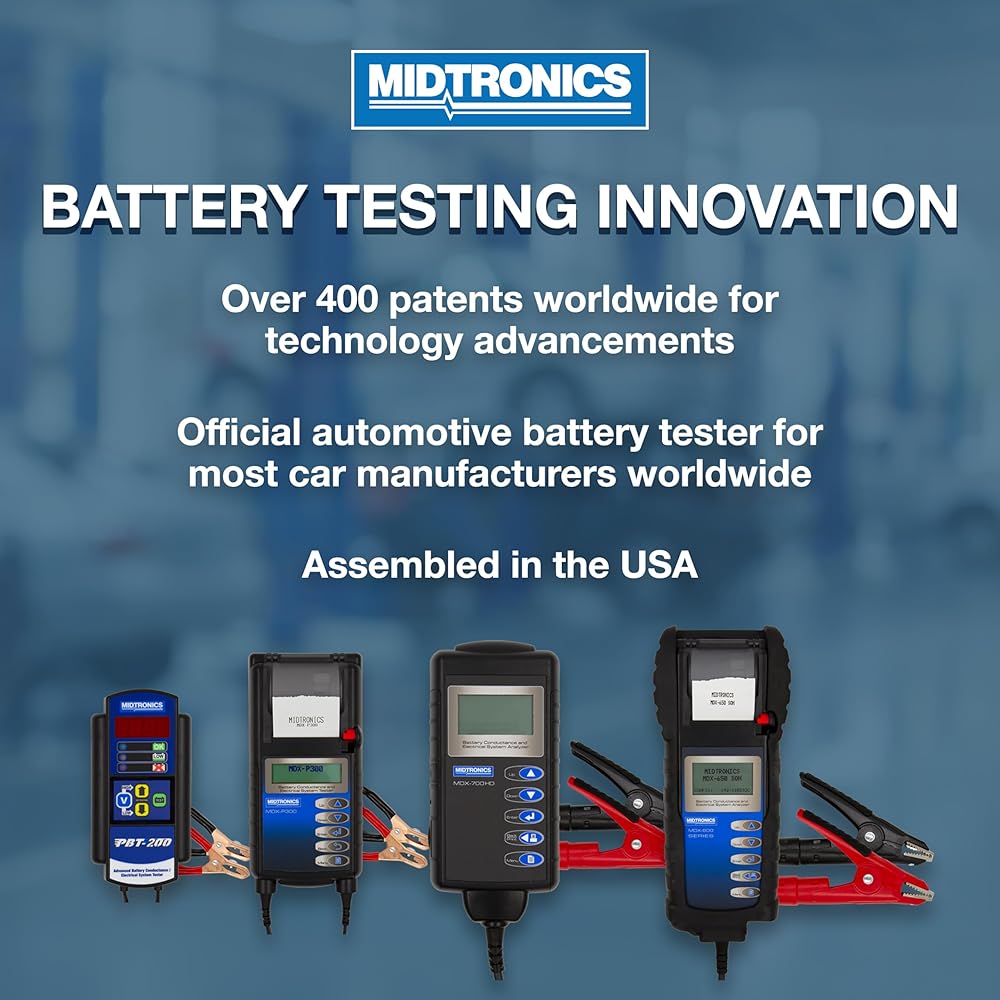 • تمتلك شركة Innovation-Midtronics أكثر من 400 براءة اختراع في جميع أنحاء العالم للتقدم التكنولوجي. تم تجميعها في الولايات المتحدة.