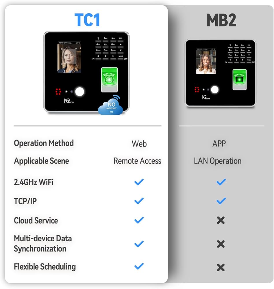 ساعة وقت سحابية من NGTeco، ساعات وقت واي فاي للموظفين في الأعمال الصغيرة مع الوجه، مسح الإصبع، RFID وPIN اللكم في جهاز واحد، آلة بطاقة الوقت مع برنامج التحكم عن بعد (0 رسوم شهرية)