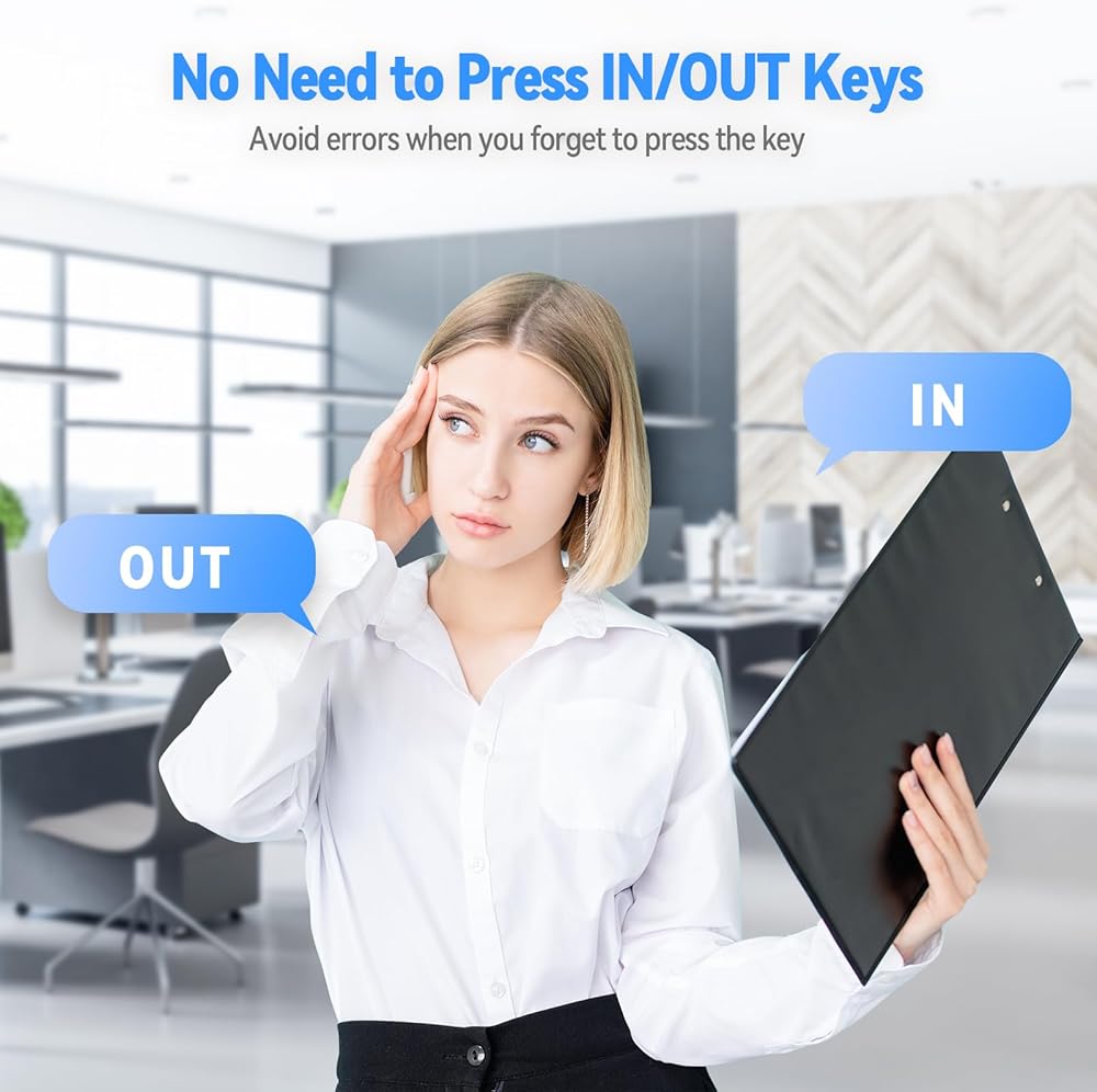 لا حاجة للضغط على مفاتيح الدخول/الخروج: في وضع الثقب التلقائي، سيتم تحديث آلة بطاقة الوقت تلقائيًا بناءً على حالة الثقب السابقة للمستخدم. تجنب الأخطاء عندما تنسى الضغط على المفتاح.