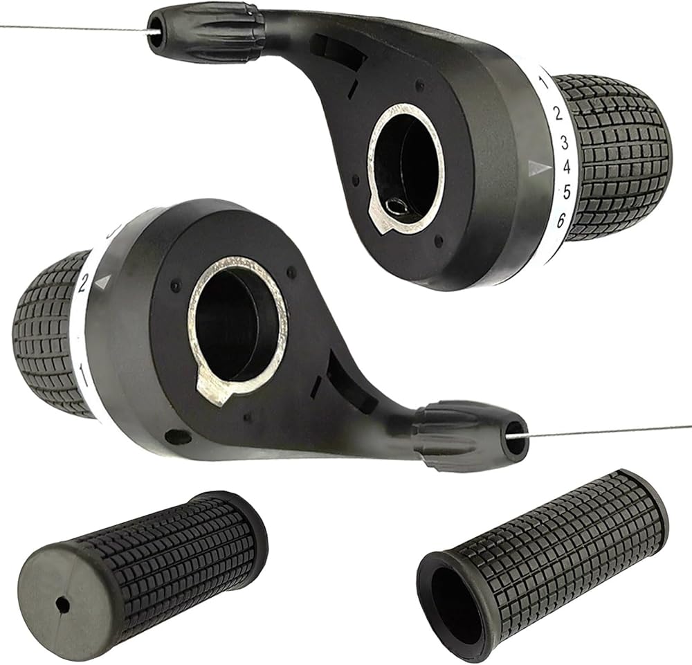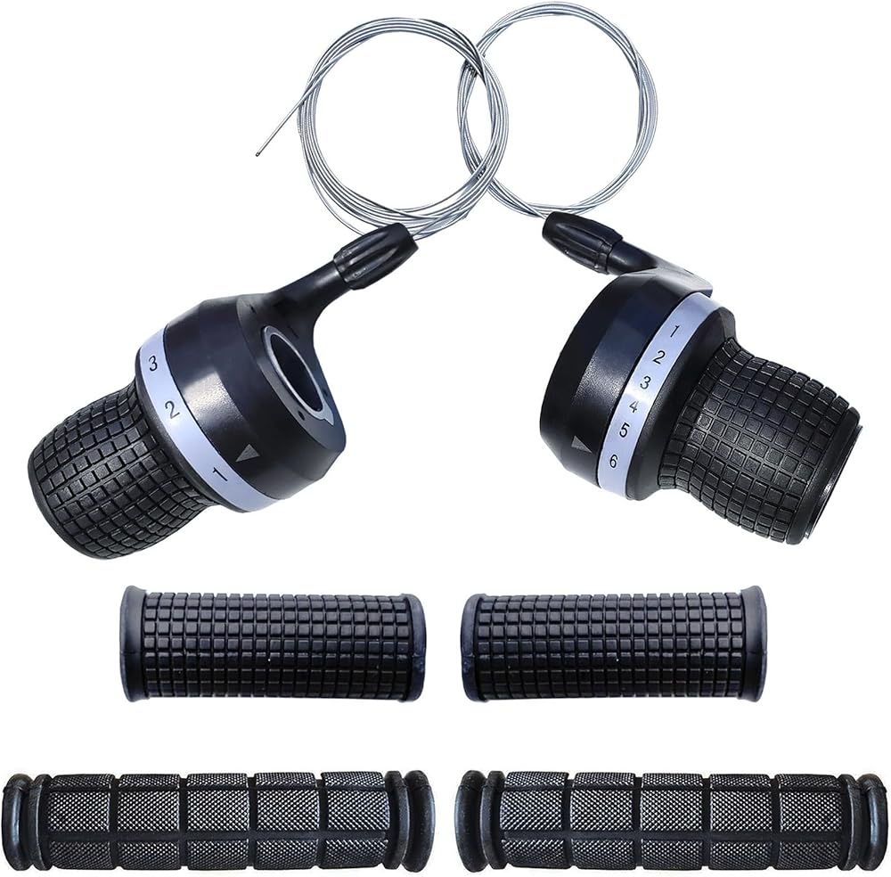 • All made of good quality materials: bike twist grip gear shifters is made of good quality plastic with rubber non-slip grip, the black bike hand grips is made of soft rubber,durable and not crack or break can be applied for long time
