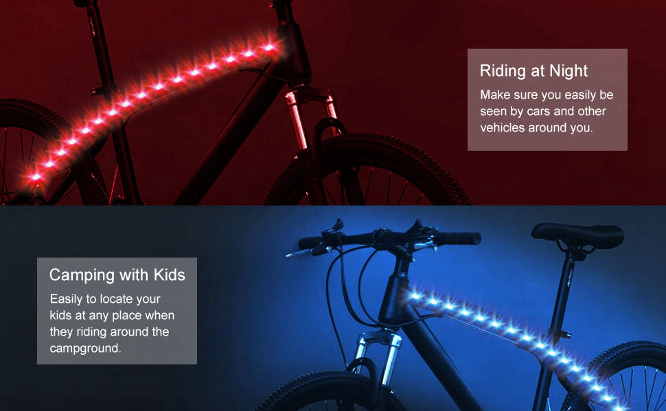 أضواء الشريط الزخرفية: باستثناء أضواء آمنة للركوب الليلي؛ الإعدادات الشخصية تجعلها أكثر ملاءمة كإضاءة زخرفية لجعل السكوتر أو لوح التزلج أو الدراجة الجبلية رائعة؛ هدية مثالية للأطفال والكبار الذين يحبون ركوب الخيل؛