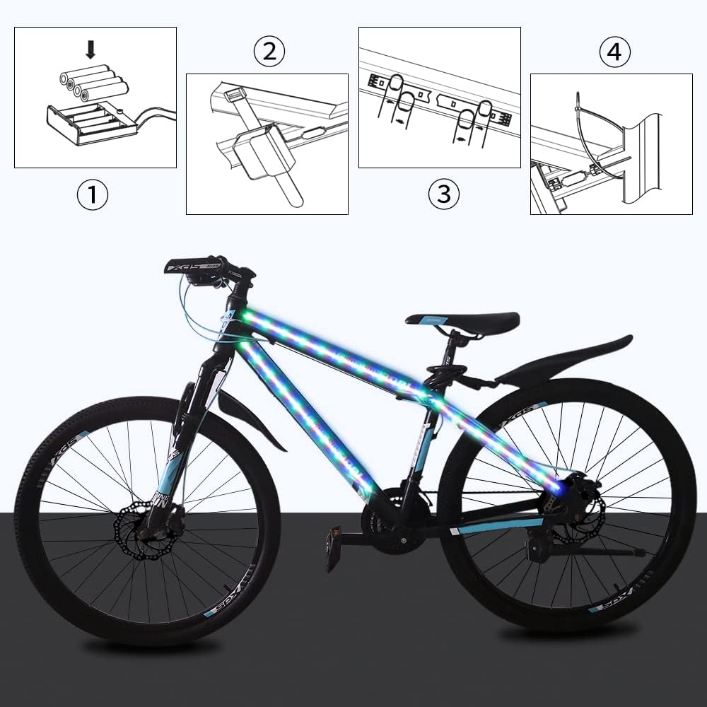 أضواء الدراجة DANCRA LED ضوء إطار الدراجة لركوب الليل، شريط إضاءة مقاوم للماء يعمل بالبطارية مع لون RGB، أضواء تزيين ساطعة للسكوتر، الدراجة ثلاثية العجلات، ملحقات إضاءة الدراجة