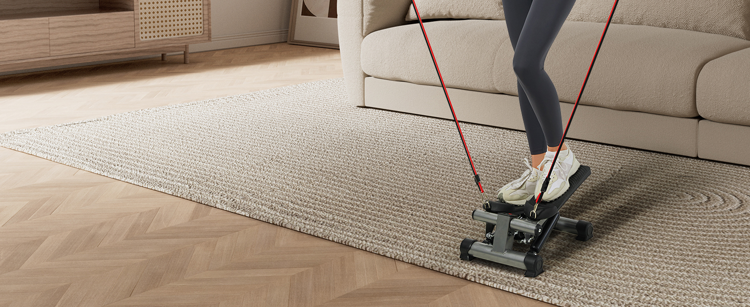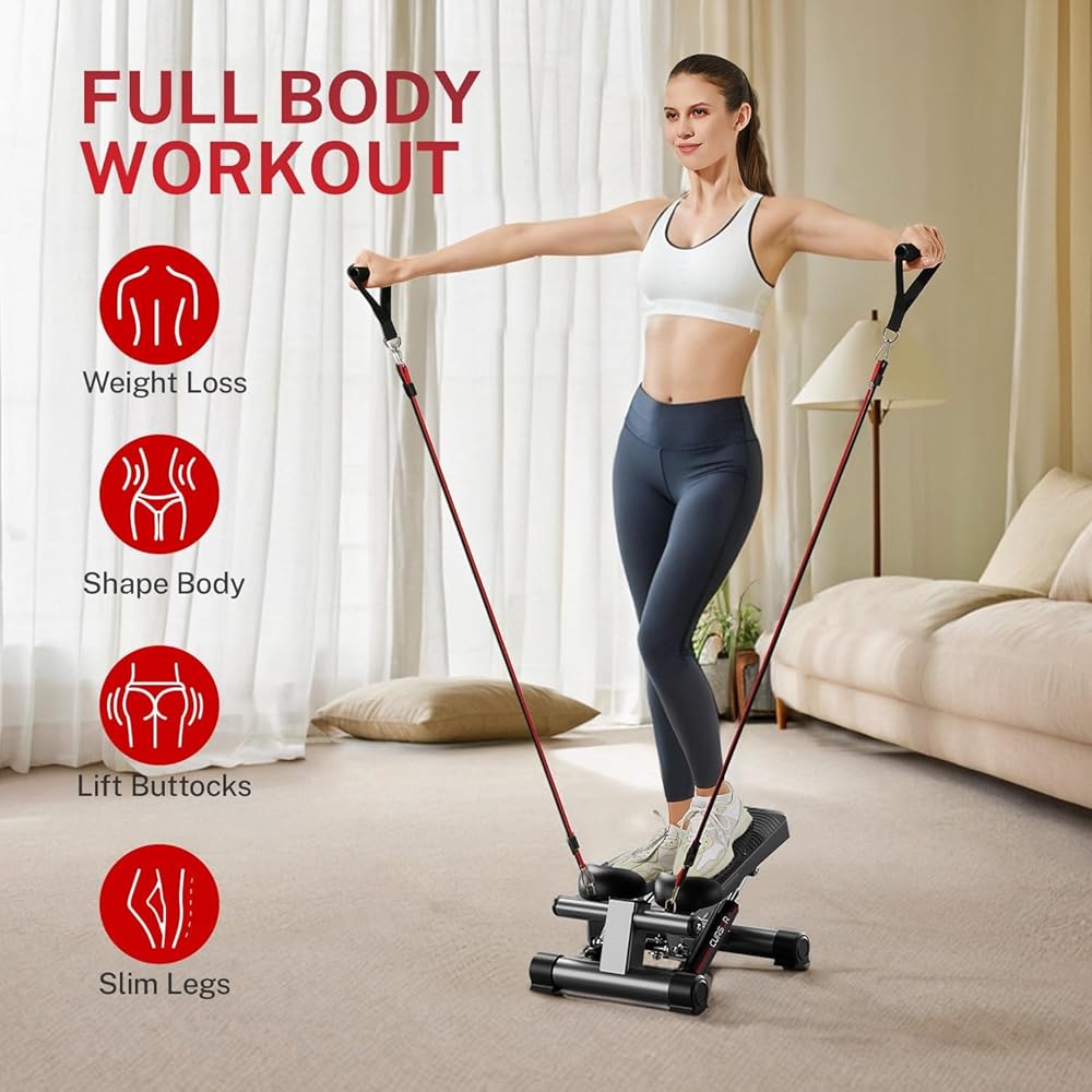 توفر آلة الخطوات، التي تتميز بأشرطة مقاومة مزدوجة، أوضاع قوة مختلفة لتمرين كامل الجسم بالكامل. قم بإشراك عضلات الجذع والأرداف والذراعين والكتفين باستخدام جهاز تمارين القلب المدمج ومنخفض التأثير.