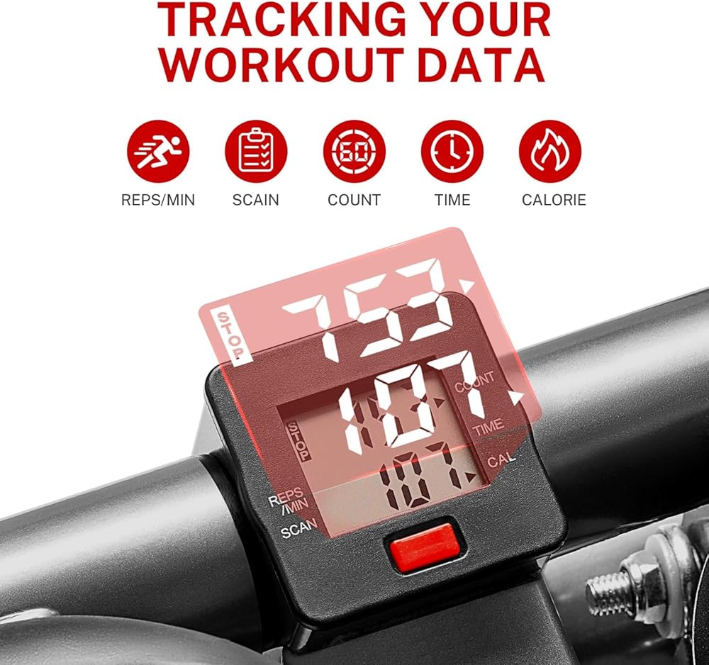 𝗥𝗘𝗔𝗟-𝗧𝗜𝗠𝗘 𝗗𝗔𝗧𝗔 ابق على اطلاع من خلال شاشة LCD وتتبع الخطوات والوقت والسعرات الحرارية المحروقة. قم بتخصيص روتين التمرين الخاص بك ليكون أكثر فعالية ومتوافقًا مع أهدافك.