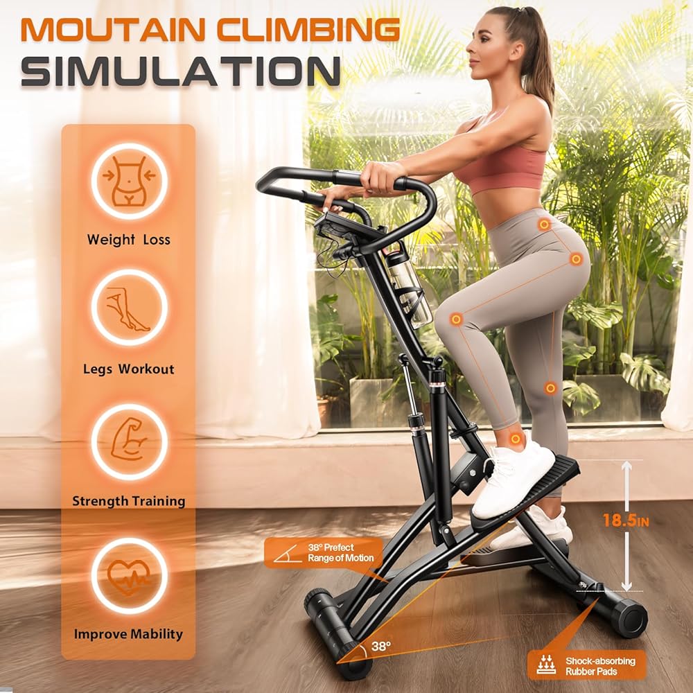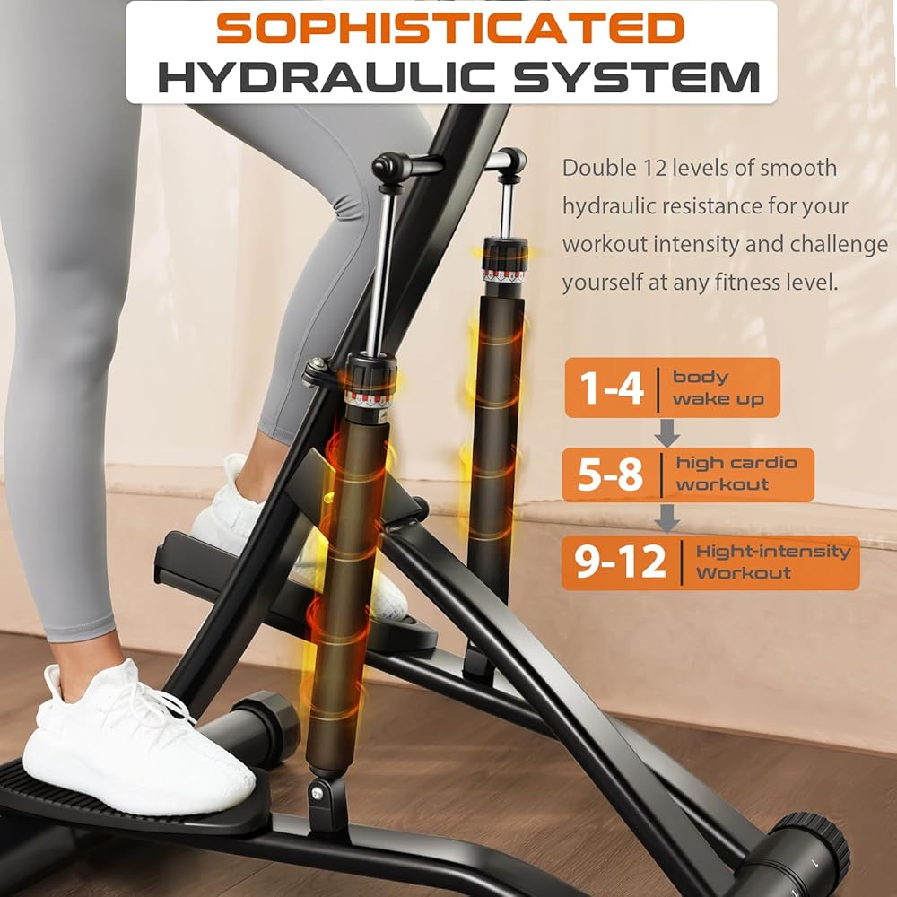 【Upgrade PRO Stepper】Different from traditional mini steppers, this pro stepper features double large 12 level Hydraulic Cylinders and Extended Step Distance to simulate moutain climbing. you can quickly accelerating your whole body fat burning in legs, buttocks and abdomen within 10 minutes of continuous stepping. Perfect for rapidly reducing lower limb fat, enhancing muscle strength, and achieving the effect of lifting buttocks and thin legs.