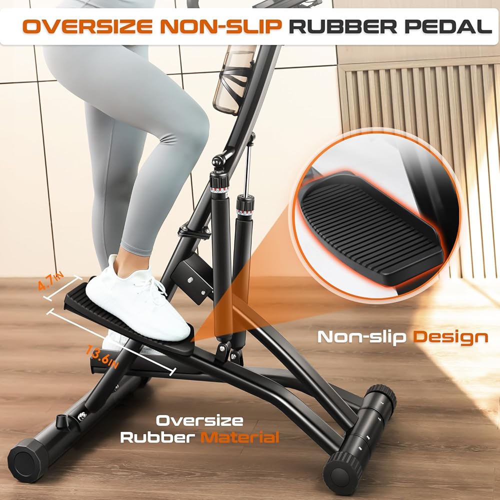 【Oversized Anti-slip Pedals】Our power stair steppers use oversized pedals with rubber shock-absorbing pads as well as the skid-resistant floor protectors to keep your balance when you exercise. 38° step exercise motion range protects your knee and ankle.