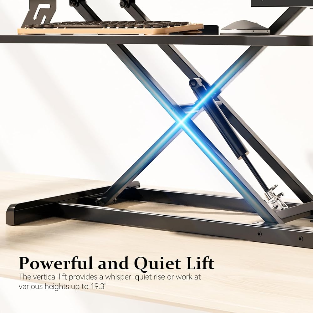 هيكل X-lift قوي: يتميز حامل المكتب JOYSEEKER بوضعية الجلوس بزنبرك غاز وإطار فولاذي عالي التحمل يمكنه حمل ما يصل إلى 33 رطلاً. آلية قوية مدعومة بنابض تضمن لك إمكانية رفع وخفض محول مكتب الوقوف بسهولة