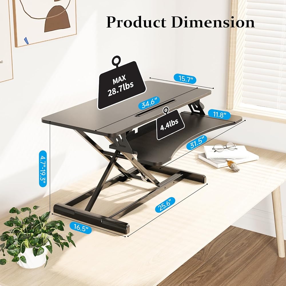 حركة مستقيمة لأعلى وأسفل: يمكن تعديل ارتفاع مكتب الطاولة بسلاسة بين 4.7 سم و19.3 سم باستخدام المقبض الفردي، مما يسمح لك بالانتقال من الجلوس إلى الوقوف في ثوانٍ.