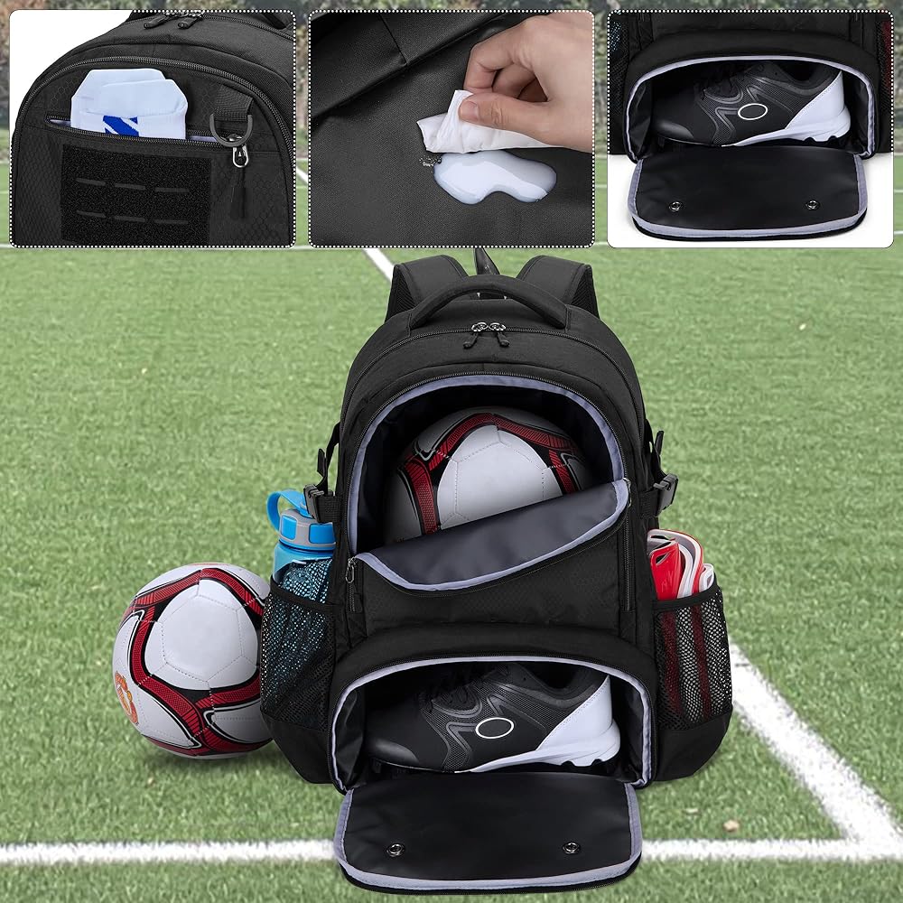 مصممة جيدًا: تم تصميم حقيبة ظهر كرة القدم مع حجرة كرة كبيرة لتخزين معدات كرة السلة أو كرة القدم أو الكرة الطائرة وتحافظ على بقاء جميع المعدات منظمة!