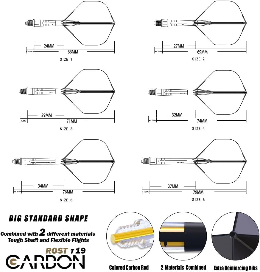 مع مادتين مختلفتين (عمود AK7 ورحلة AK5) يضمن أن العمود والخيط اللولبي أكثر قوة للحفاظ على شكلهما، ولكن يحافظ على الطيران مرنًا، بعيدًا عن التمزق الناتج عن رمي السهام السابقة، والاستخدام الدائم للعبة رمي السهام الخاصة بك.