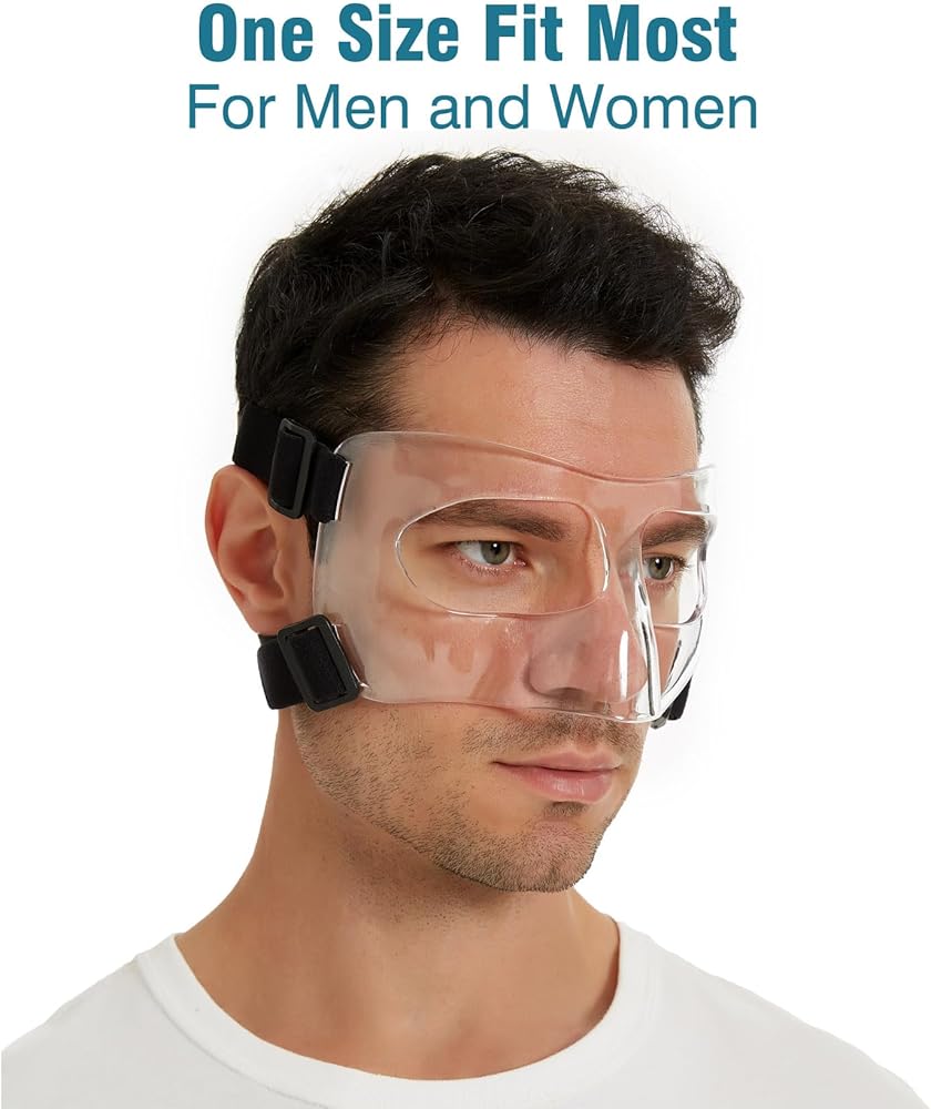 قناع درع الوجه لكرة السلة، كرة القدم، الكرة اللينة، كرة القدم، الصندوق، تجميل الأنف، واقي الأنف للأنف المكسور، واقي الوجه مع بطانة إسفنجية للرجال والنساء، (إطار كامل)