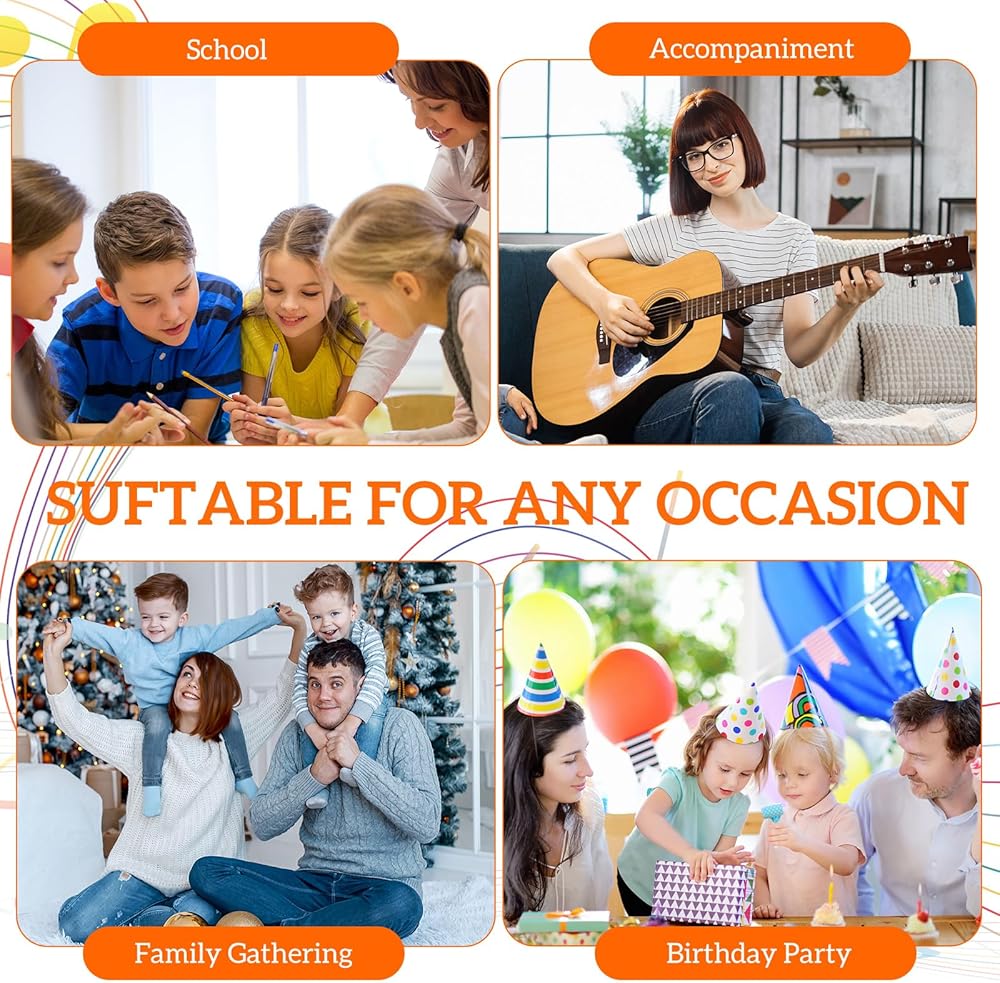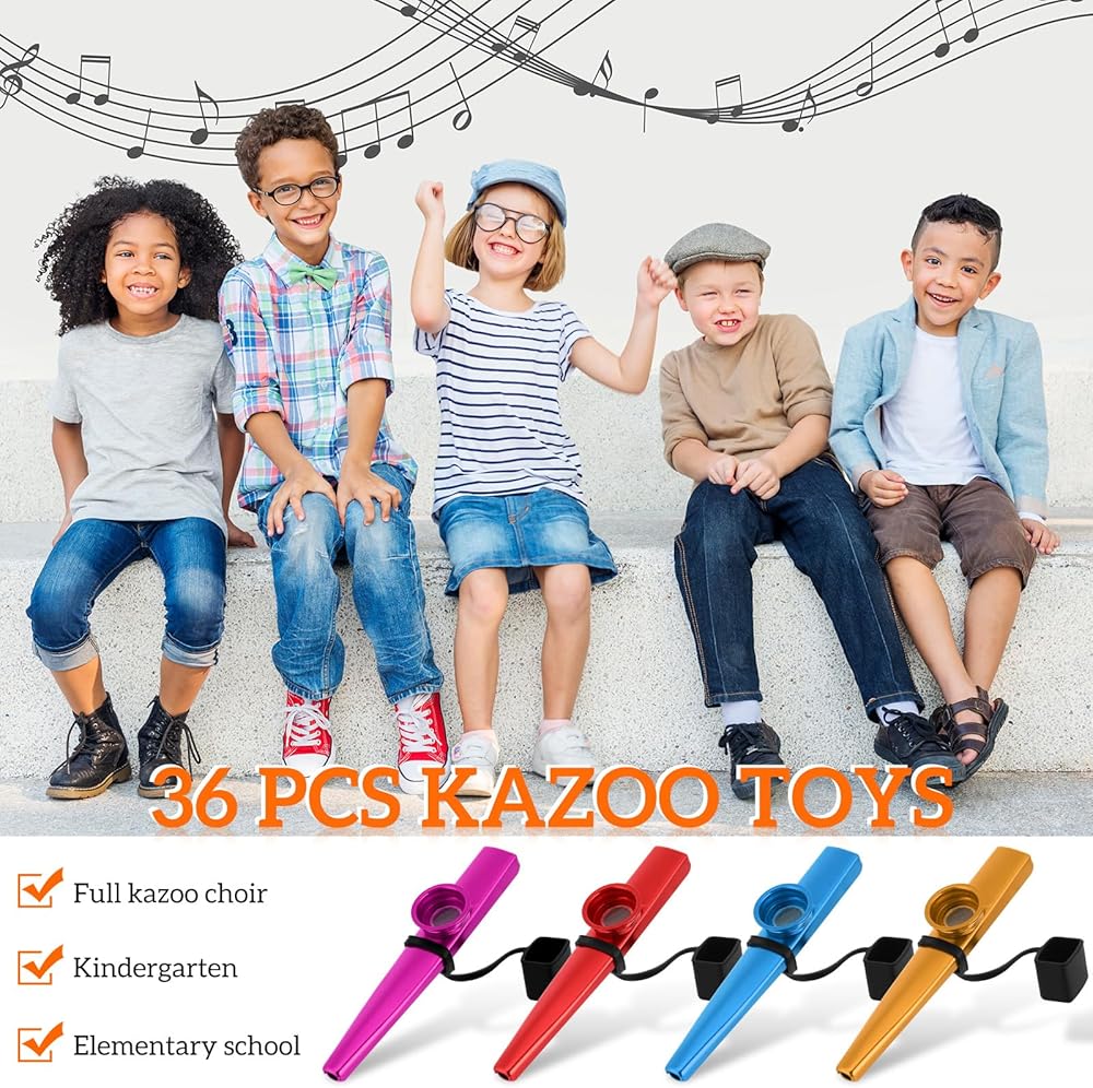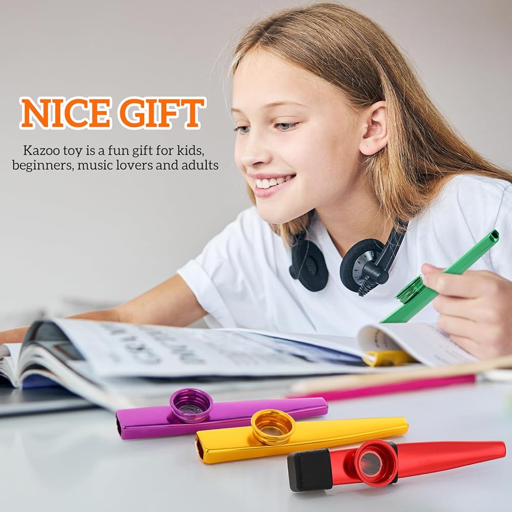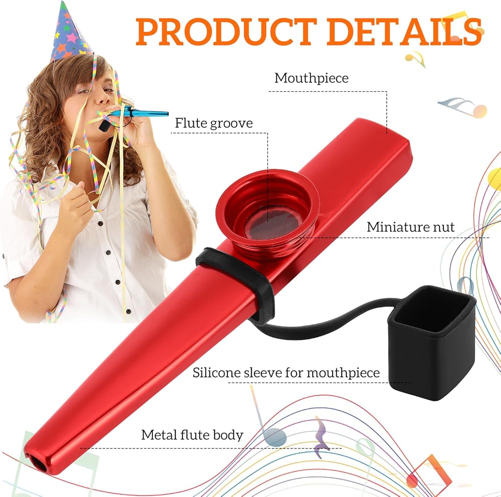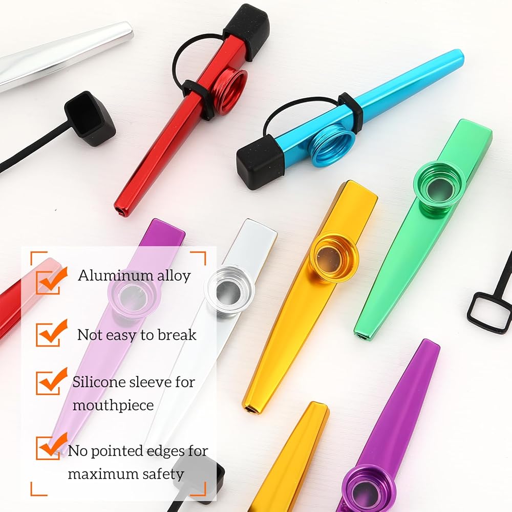 You can play the kazoos with flute diaphragms alone or as an accompaniment to guitar, ukulele, violin, piano and other instruments, an ideal instrument for the whole family.