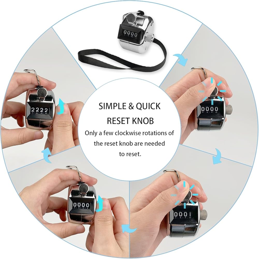 Easy to Use: The counter counts from 0 to 9999, with a reset knob, which supports immediate reset. It can be easily and quickly reset by rotating a few times clockwise, without the need to cycle display 9999. Powerful and easy to operate. What is the most important thing about the counter clicker!