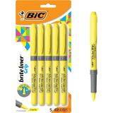 BIC Brite Liner Grip highlighter is a tank style highlighter with a textured grip zone for comfort and control. It has a chisel tip for broad highlighting and fine underlining. It is ACMI approved non-toxic