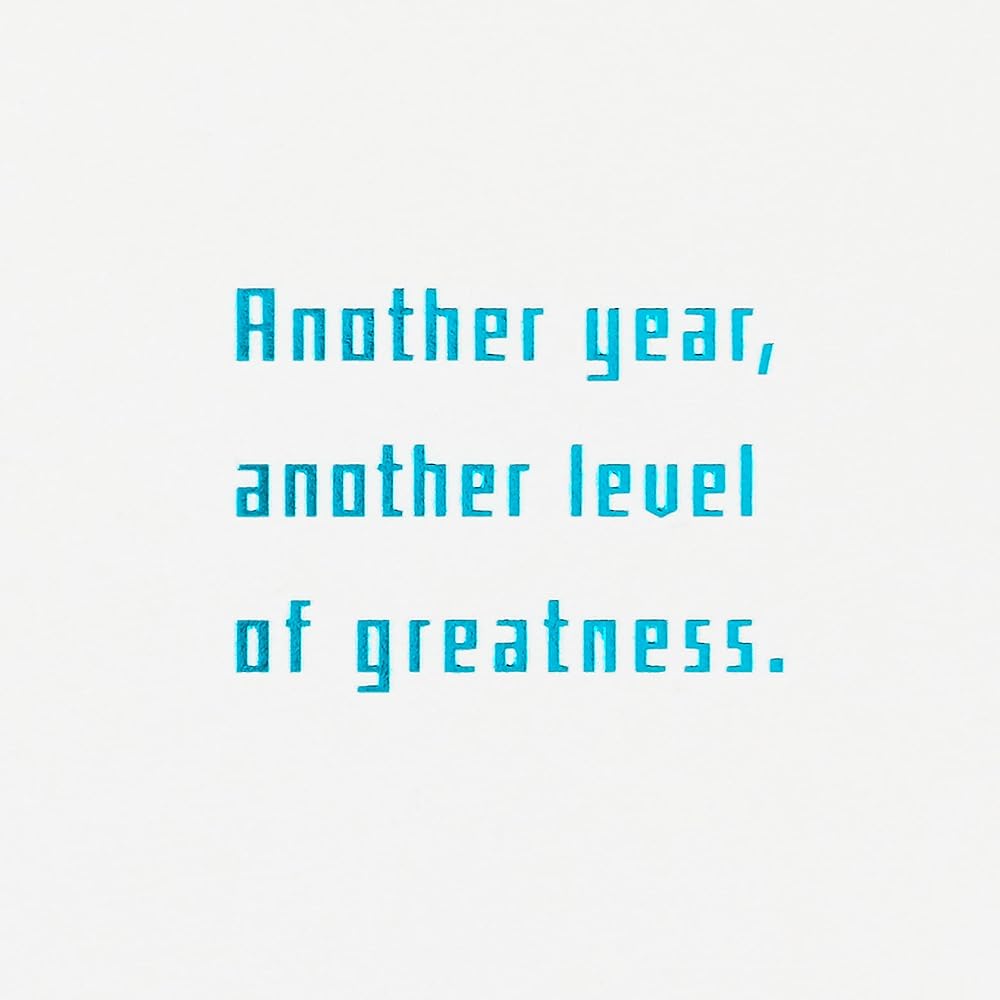 This birthday card is a fun way to wish a gamer in your life well on their special day. With an intricately designed video game controller on the front, and a punny message inside, it's sure to please your brother, boyfriend, son, or anyone who can't get enough video games. The Hallmark brand is widely recognized as the very best for greeting cards, gift wrap, and more. For more than 100 years, Hallmark has been helping its customers make everyday moments more beautiful and celebrations more joyful.