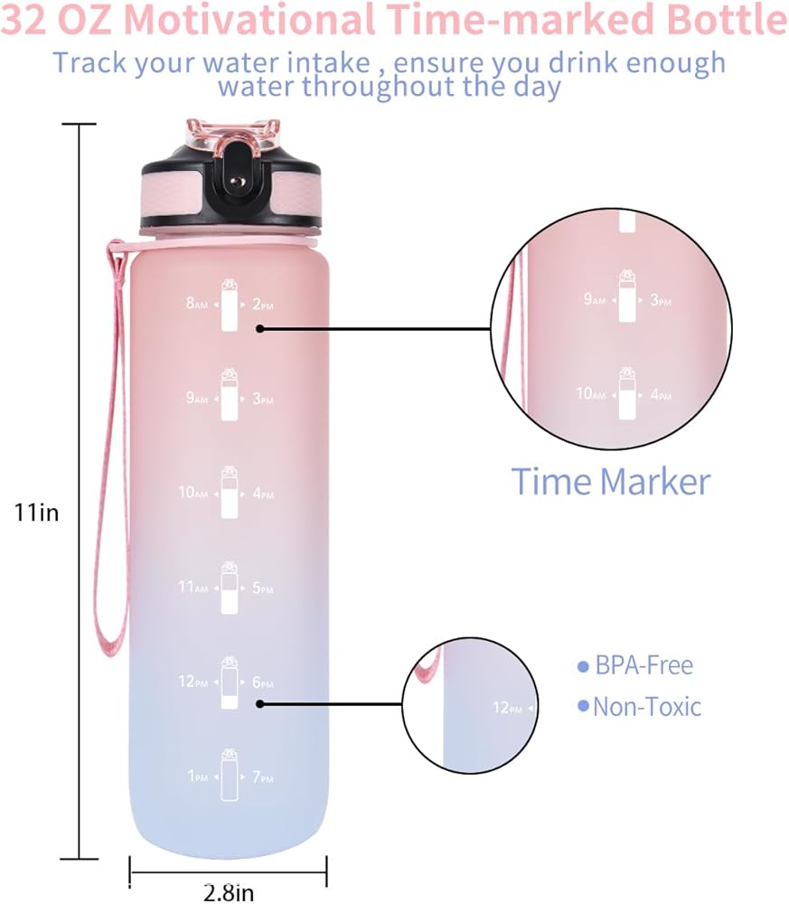 تصميم عملي: مع علامات الوقت على الزجاجة، يمكن للزجاجة الشفافة رؤية استهلاكك اليومي للمياه. أذكرك بالبقاء رطبًا وشرب كمية كافية من الماء، وتحقيق أهداف اللياقة البدنية بشكل أفضل، بما في ذلك فقدان الوزن والتحكم في الشهية والصحة العامة.