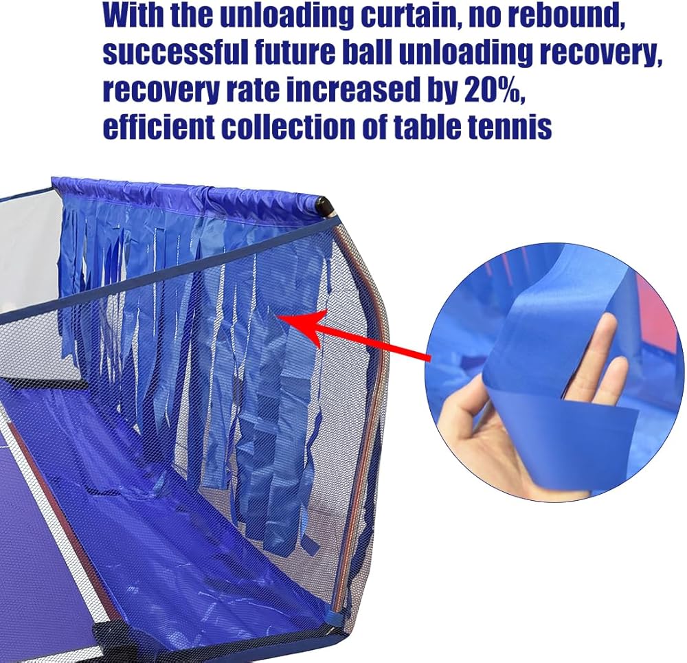 The table tennis ball collection net with tassel buffer belt design, can increase the buffer times to efficient ball collection without bouncing effect. The net is made of nylon and is strong and durable.