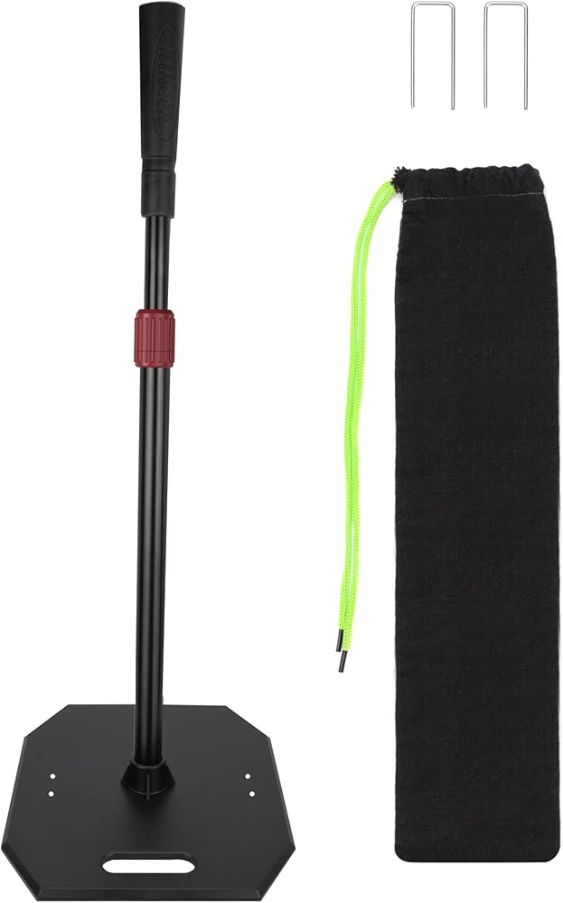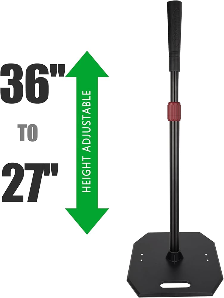 [Easy twist lock] The height of the baseball tee can be easily adjusted from 27"to 36". Once the twist lock is tightened, the metal post will not slide down.