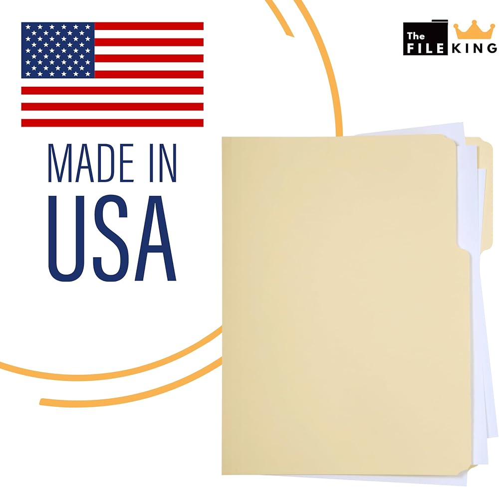 صُنع في الولايات المتحدة الأمريكية - جميع منتجات File King للمنزل والمكتب مصنوعة بفخر في أمريكا بنسبة 100% وتحتوي على محتوى معاد تدويره بنسبة 20% حيث حان الوقت للمجلدات المصنوعة من الأشجار الأمريكية على يد عمال أمريكيين مع وضع العالم كله في الاعتبار.
