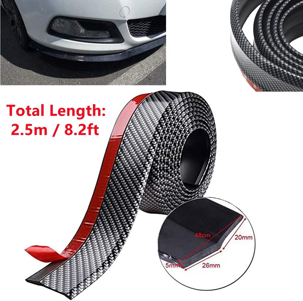 BoYeeBo Universal Car Front Bumper Protector ذاتي اللصق ذاتي اللصق للجسم، تنورة مطاطية ممتصة للصدمات، حافة ممتصة للصدمات، 2.5 متر/8.2 قدم (ألياف الكربون-أسود) 250*5.5 سم (طول*عرض)